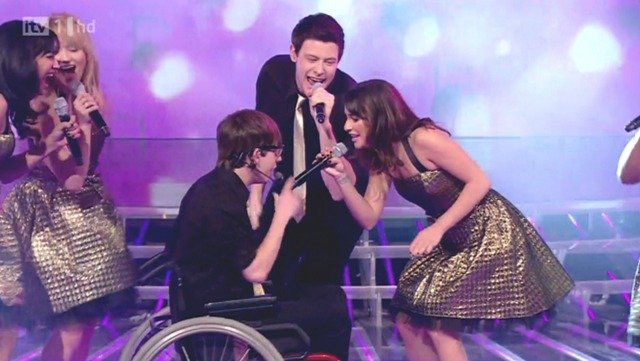 Artie’s been given mechanical leg-walker things. He can only use them sometimes, and they’re called a Re-walk. They found it under Brittany’s Christmas tree. They have no idea where they came from. And I admit to tearing up, even though I know well that Kevin McHale can walk just fine. Outside, we see Biest smiling happily.