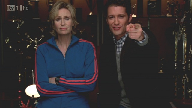 Mr. Schue comes to visit! Kurt feels it’s bittersweet. Mr. Schue needs his help. In the past he’s bought his wife jumper cables. So he needs Kurt’s help for secret santa.