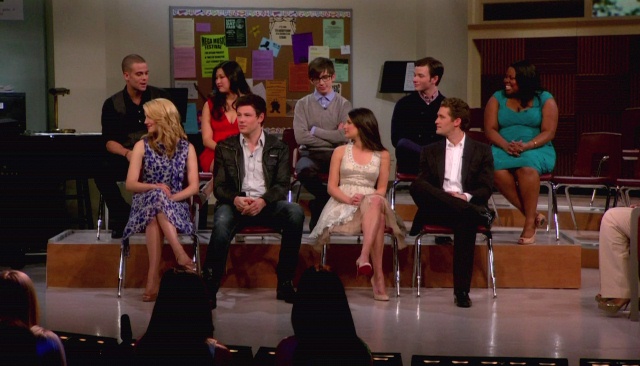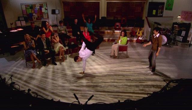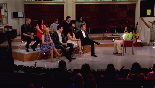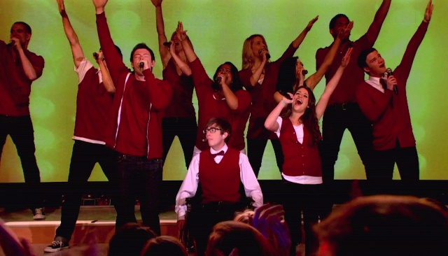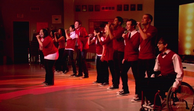 So we’re talking, she and I and another friend of mine who was trying to ditch me because he was about to stab Oh I Know girl, and Glee comes up. Of course she KNOWS about Glee. She f-cking invented Glee. Then she declares that Glee is not really realistic because high school show choirs can’t possibly put together that kind of production value and quality.