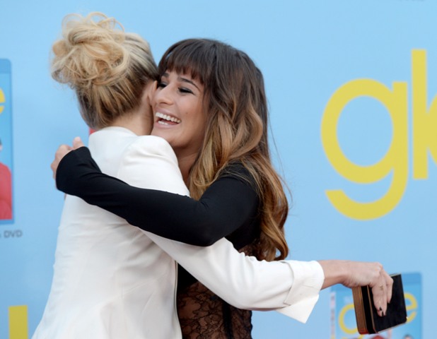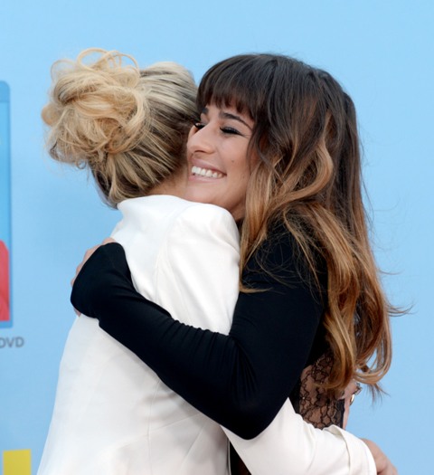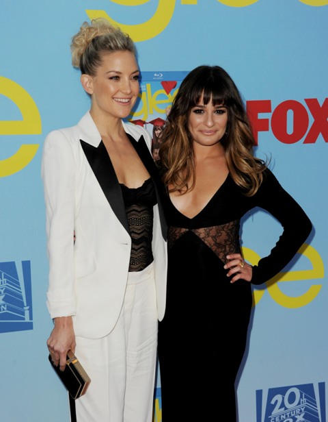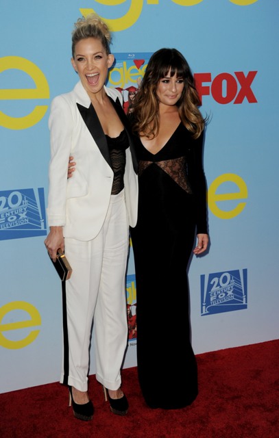Attached - Hudson and Lea Michele at the premiere the other night. (Lainey: look at all that fake hair on Lea Michele.)