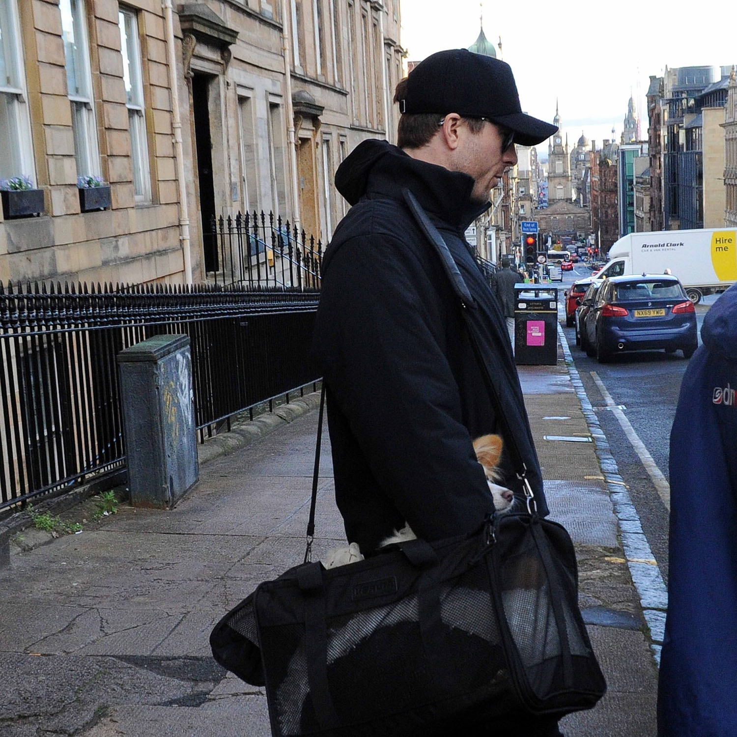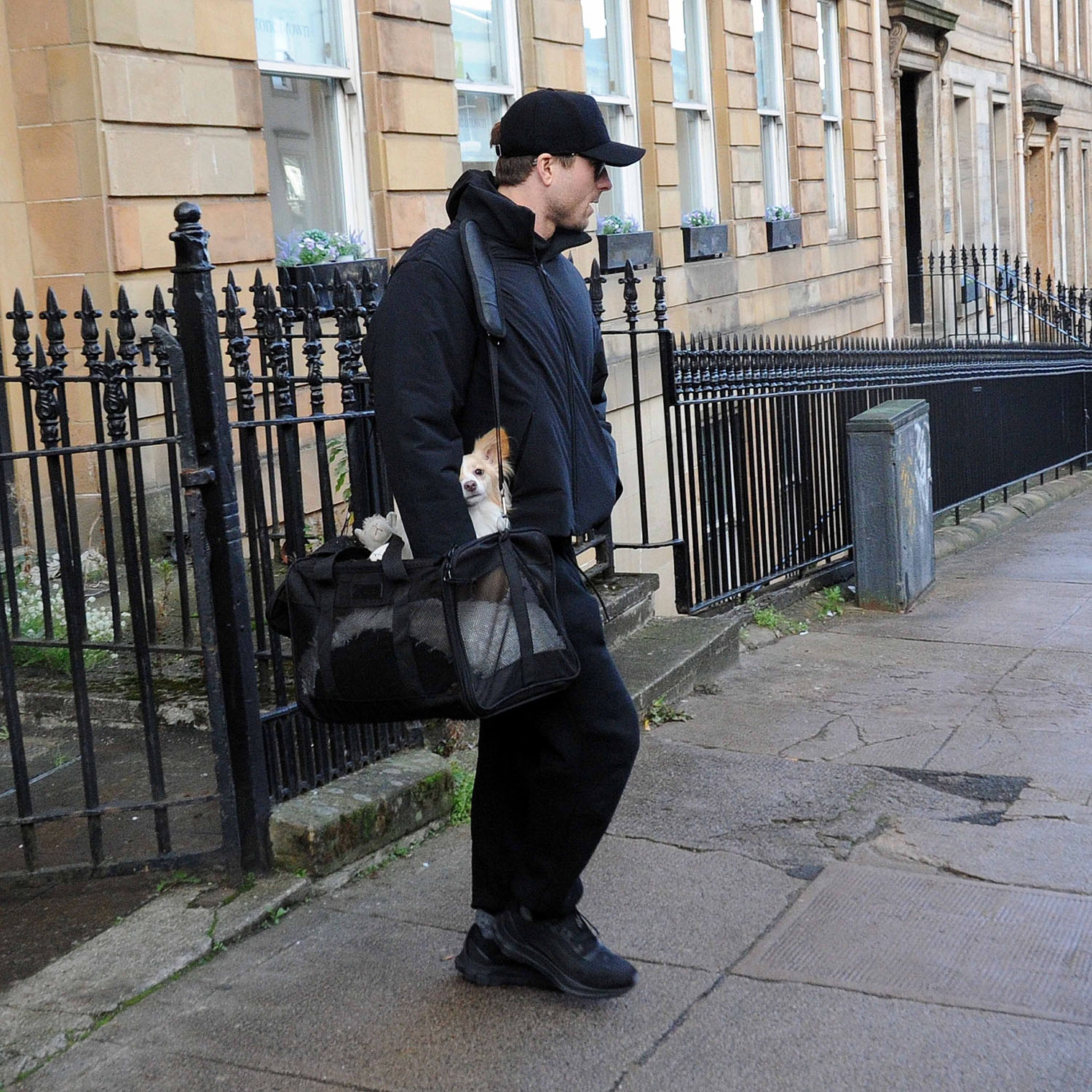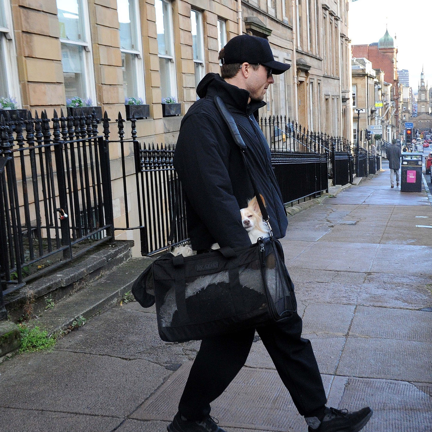Here are Glen and Brisket leaving their Glasgow hotel on Friday.