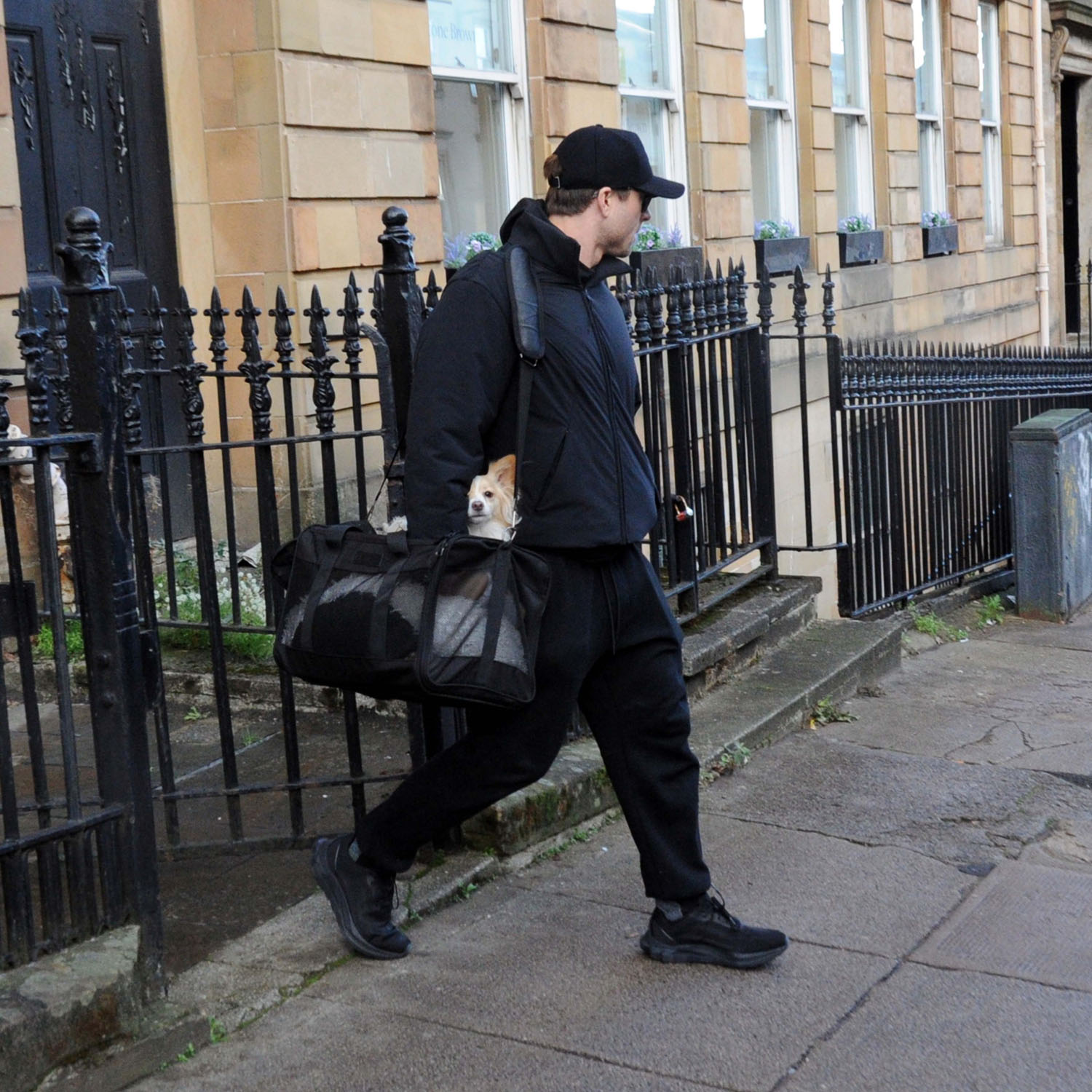 Here are Glen and Brisket leaving their Glasgow hotel on Friday.