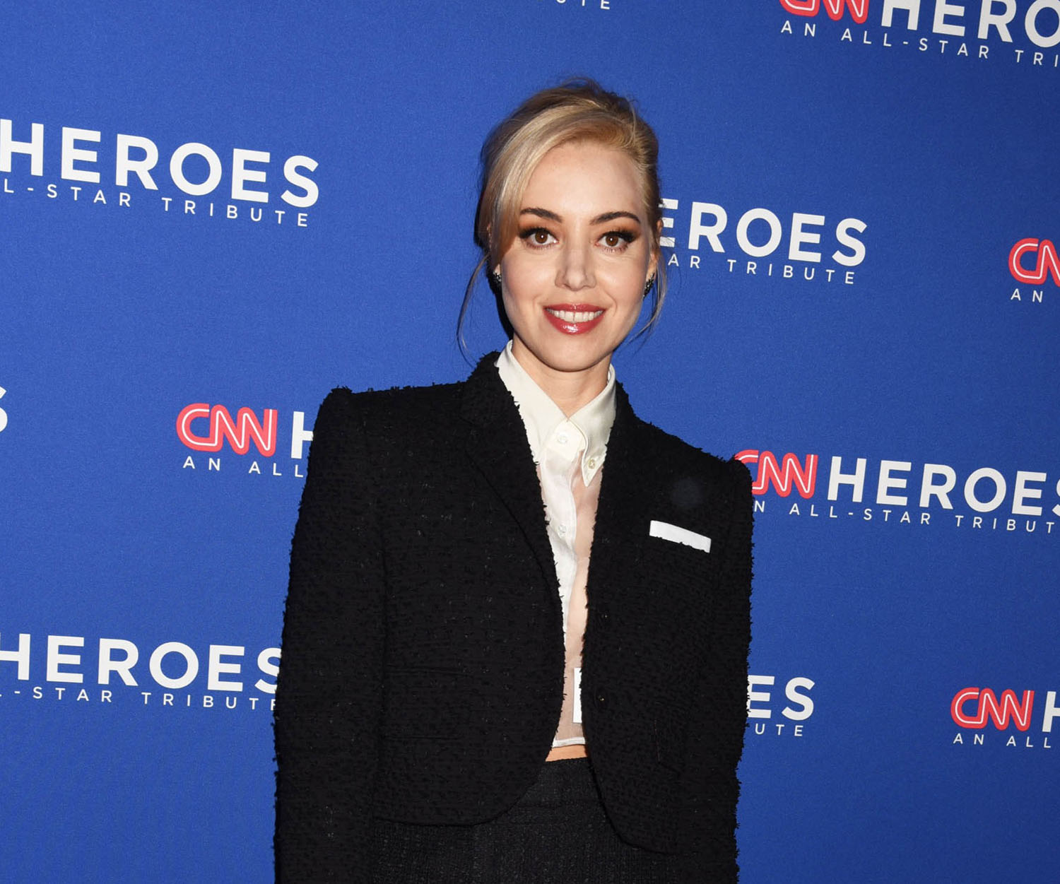 Attached - Golden Globe nominee Aubrey Plaza at the CNN Heroes All-Star Tribute on the weekend.
