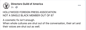 It started on Friday when, once again, social media was all over the HFPA about their lack of Black membership as celebrity after celebrity, many of whom have won Globes themselves, called out the HFPA and TimesUpped their asses. Here’s one example among many.