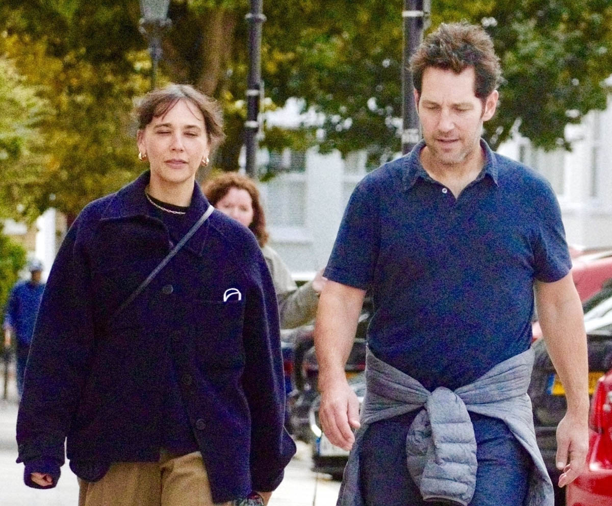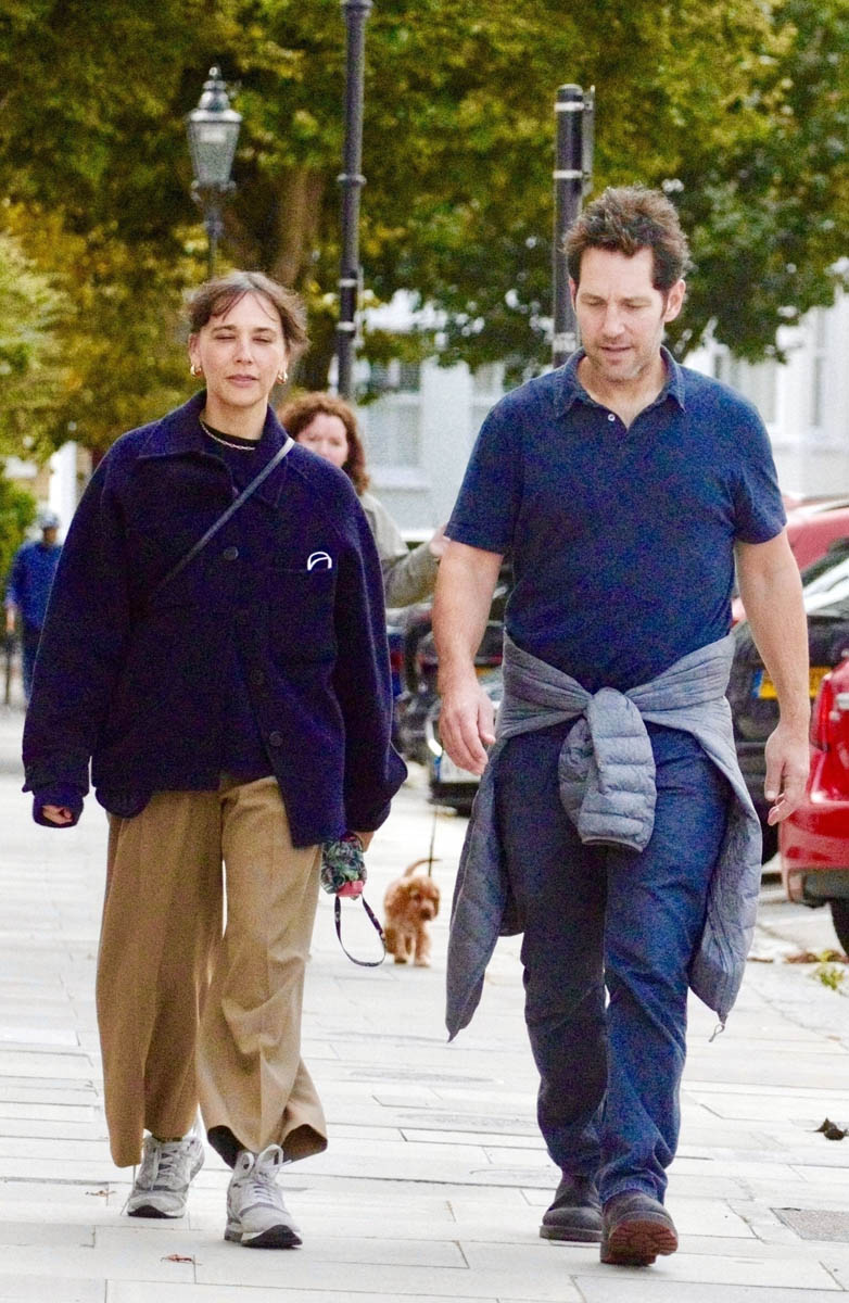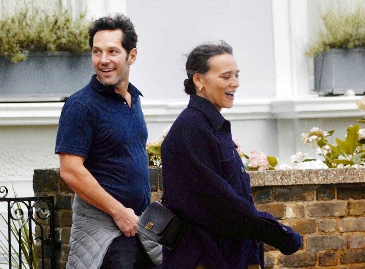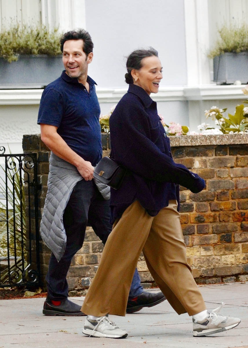 Paul Rudd and Rashida Jones, who’ve been good friends for years, since at least the late 2000s when they were in I Love You, Man together, were photographed out for a walk together in London the other day. According to the paps, they were on an informal literary tour, walking past residences of writers like Yeats and Plath. Not sure if it was intentional or if that was just the direction they decided to go in. We don’t get a lot of pap shots of Paul Rudd, not enough to be commensurate with his popularity – or at least his online popularity. Have you noticed that Paul Rudd seems to trend every three or four months or so? Once a year it’s for his birthday, which is when everyone is all like, what? He’s that age? And he hasn’t changed a bit? And then sometimes it’s not his birthday but someone will see a photo of him anyway and make the same observation: Paul Rudd looks the same!