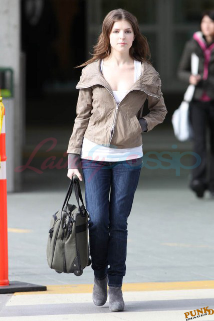 Anna Kendrick arrived back in Vancouver this weekend to resume work on the Joseph Gordon-Levitt/Seth Rogen project. She seemed to be in great spirits. Looks really, really gorgeous. Perhaps the most gorgeous I’ve ever seen her. And certainly more gorgeous than she’s been on the awards carpets. Mainly because I wasn’t feeling her hair.
