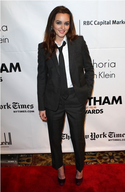 Attached – Leighton Meester in a cute suit at the Gotham Awards last night.