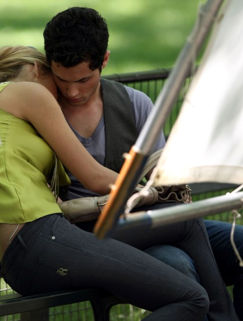 Of course Chuck at the beach is smarmy and delicious even though Ed Westwick’s body is disgusting and I’d sleep with him anyway. There’s also a quick shot of Nate on a hammock with Serena??? If you’re a fan of Serena and Dan though, not to worry. On set this week the two have been kissing up a storm...in character.