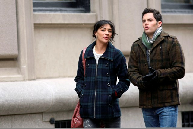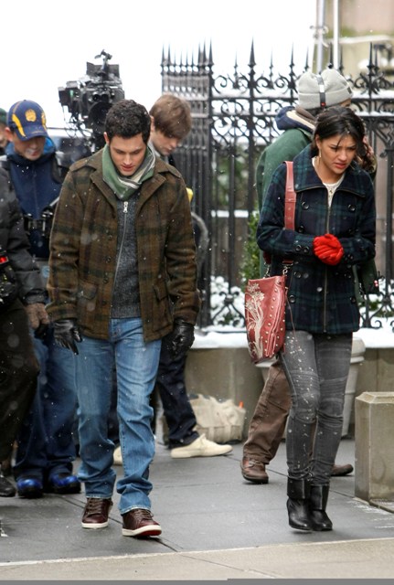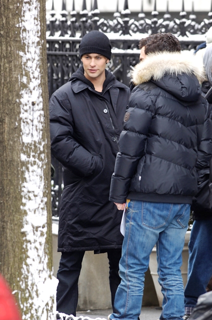 Attached – more photos from on set at Gossip Girl this week. Jessica Szohr’s face is looking busted. Too many late nights hard living with Ed Westwick, lucky bitch. And the way Penn Badgley wears his pants… as if you needed another reason to turn away.