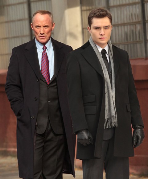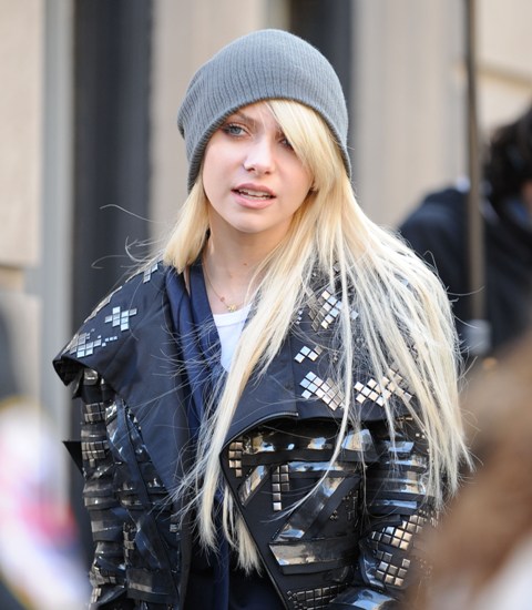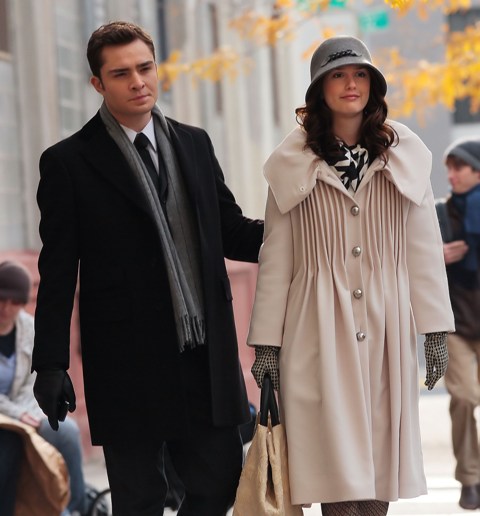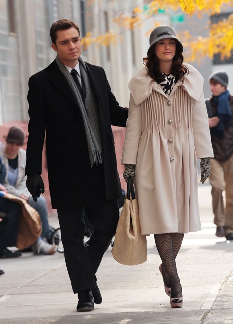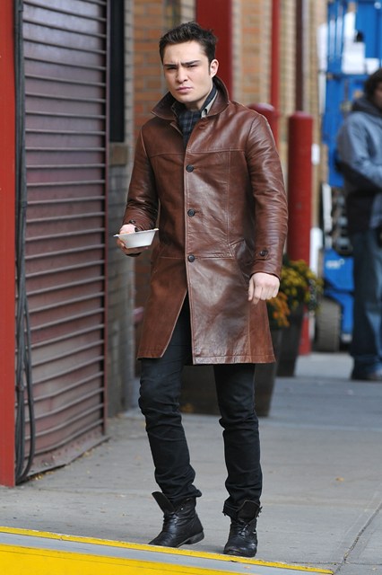 Here are Ed Westwick and Leighton Meester (her new video looks ASS) shooting in New York this week. Taylor Momsen too. The paps are there to remind us she’s still on the show. How do we feel about my Shamef-ck in that brown leather jacket?