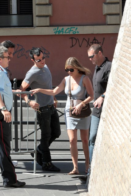Jennifer Aniston and Justin Theroux are now in Rome after beginning what appears to be a European holiday in Paris earlier this week. I thought this might be a good time for some Gossip Nostalgia. Because Jen and Brad Pitt were also papped in Rome together a few years ago.