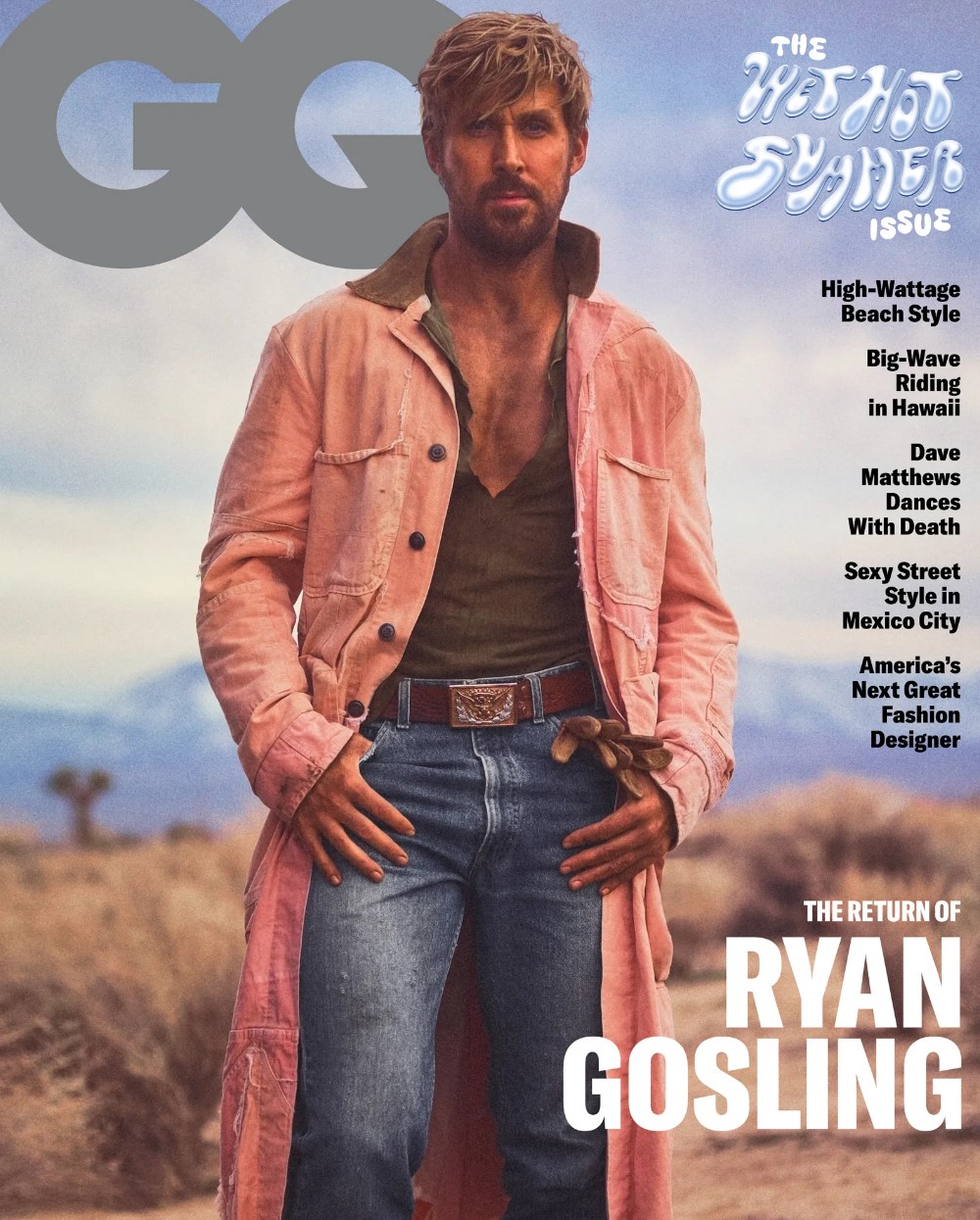 Ryan Gosling covers GQ’s new Summer Issue ahead of the release of what could very well be the movie of the summer. That’s Barbie, of course. And he’s Ken or, rather, a Ken, so the pink coat on the cover is a nice touch.