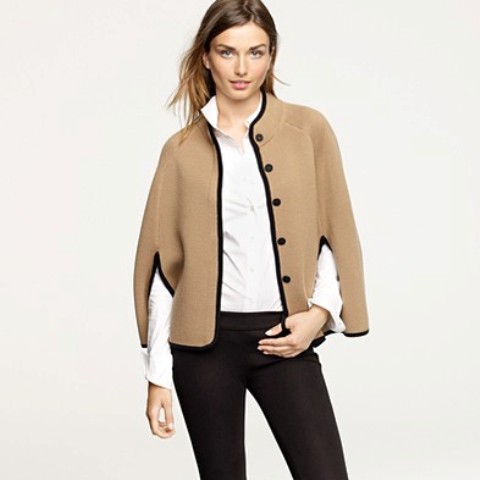 I can’t get enough camel in my wardrobe so of course I was drawn to this look by J Crew. Digging the cropped cut and the black piping. But if you want something a bit longer and a bit of a darker camel shade, check out this great one by Ralph Lauren.