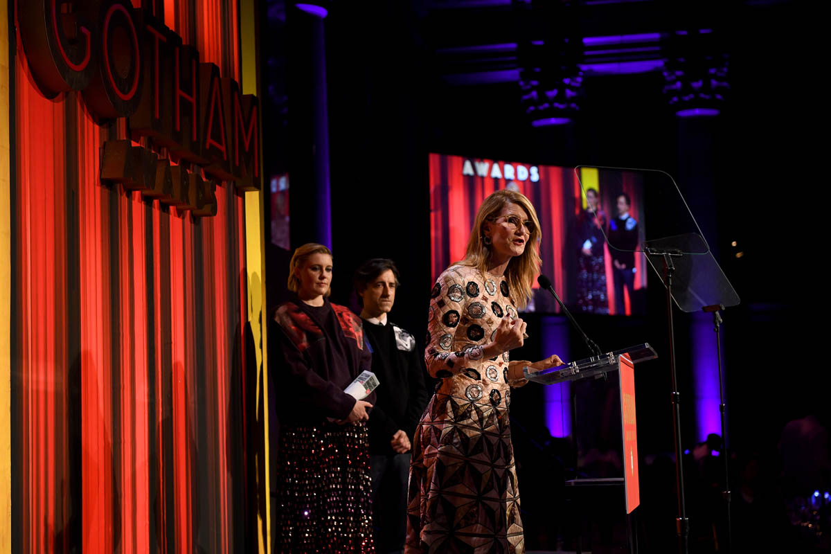 Greta Gerwig and Noah Baumbach are wearing Laura Dern sweatshirts to pay tribute to her at the #GothamAwards. Can’t help but stan. (I also want to buy these.) pic.twitter.com/m2es9YYBkf— Nigel M. Smith (@nigelmfs) December 3, 2019