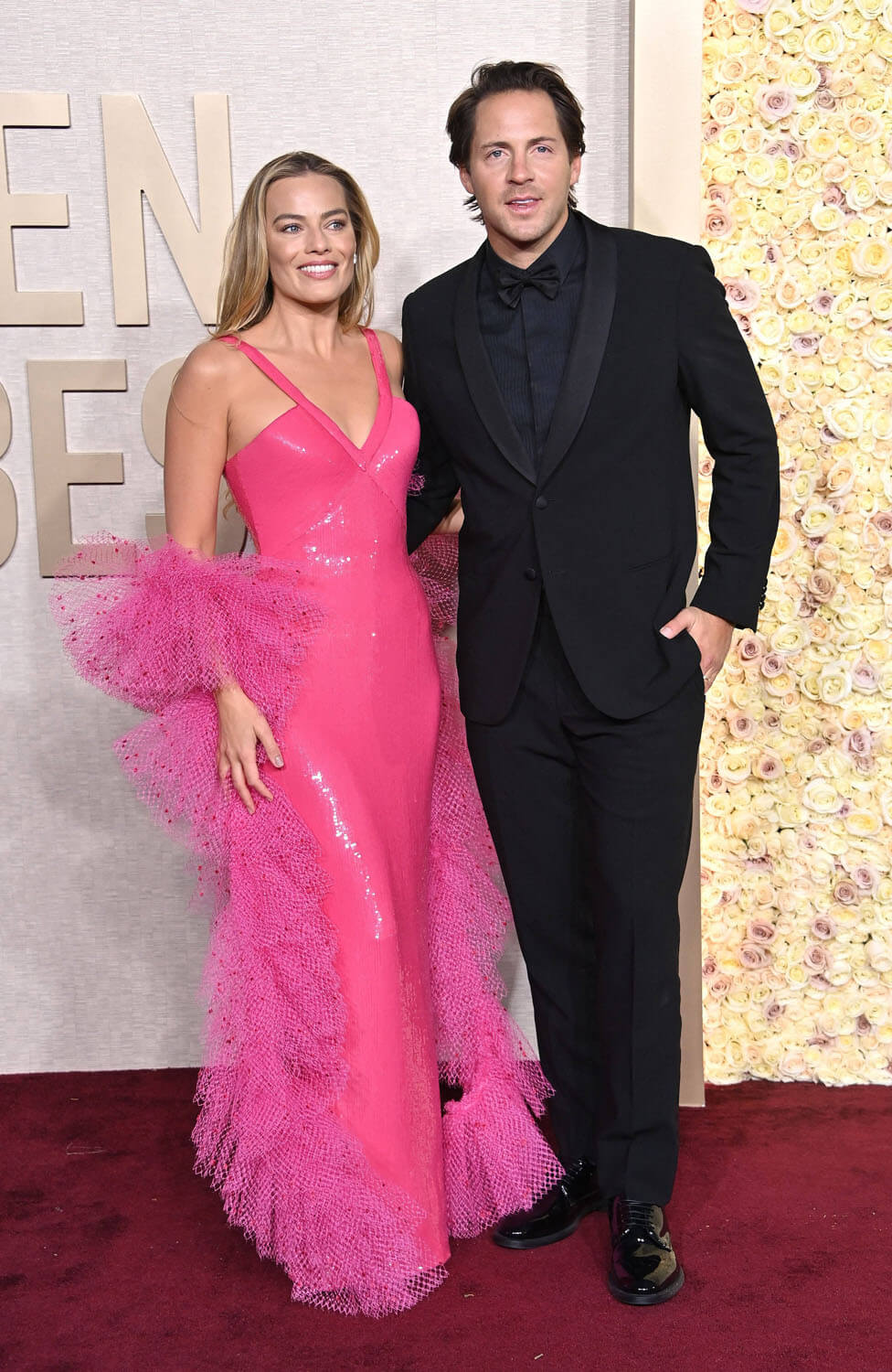 As for our actual Barbie and Ken, well, are we getting thoroughly sick of Margot Robbie in pink? This is a solid dress in and of itself, by Armani, with a sequined tulle stole referencing 1977’s Superstar Barbie.