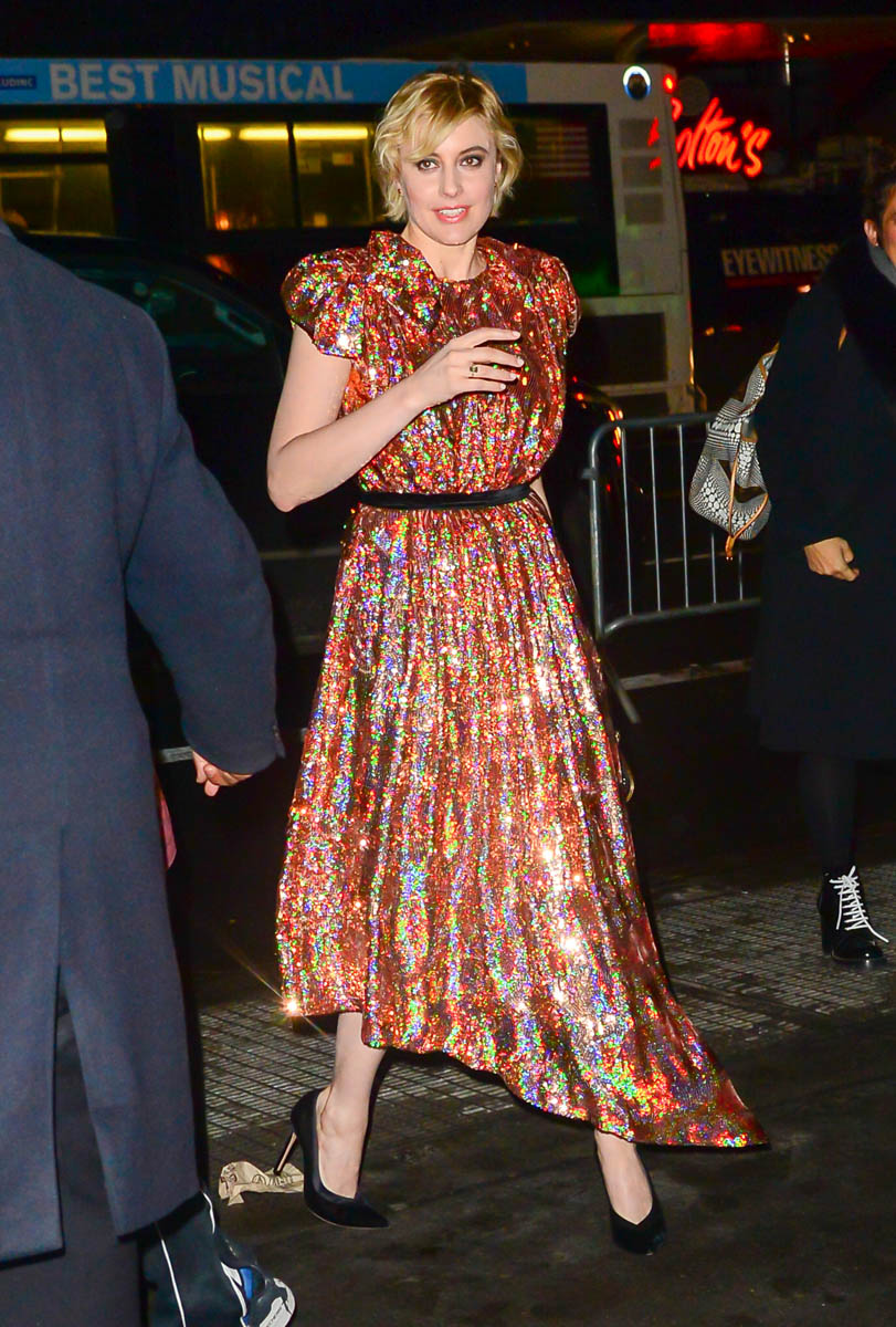 Greta Gerwig accepted the National Board of Review Award for Best Director last night in New York for Lady Bird. Lady Bird won the Best Film Comedy/Musical Golden Globe on Sunday. It was nominated for 3 BAFTAs yesterday (though not in the best film or directing categories) and, as you know, it’s expected to be an Oscar contender when the nominations are announced later this month. Greta, then, is one of the stars of this award season. And on Sunday, when Time’s Up was making its statement on Sunday, many people pointed out that Greta has worked with Woody Allen – she was in To Rome With Love – like so many other high profile names in Hollywood who’ve either defended their decisions, claimed ignorance about the accusations against him, or simply haven’t been asked (most of the men). None of the previous responses to The Woody Allen Question have felt adequate – and, most importantly, none of those responses have felt like there can be a step forward. Until now?