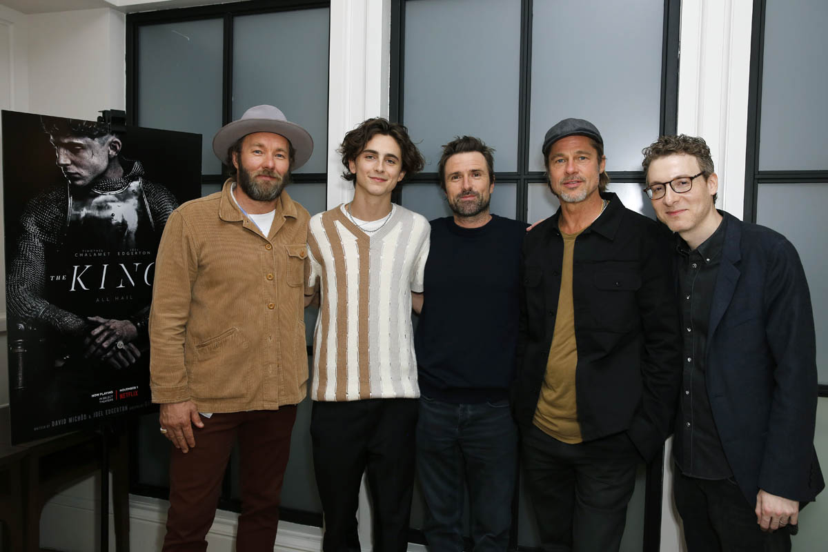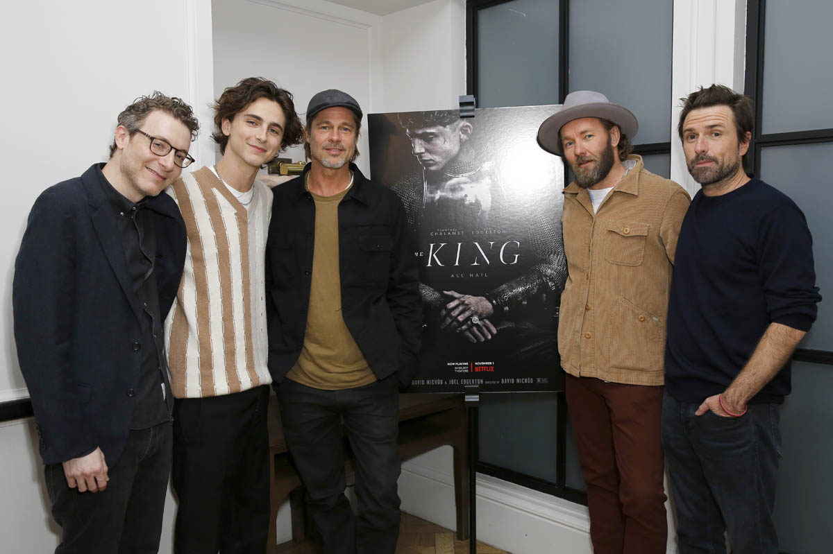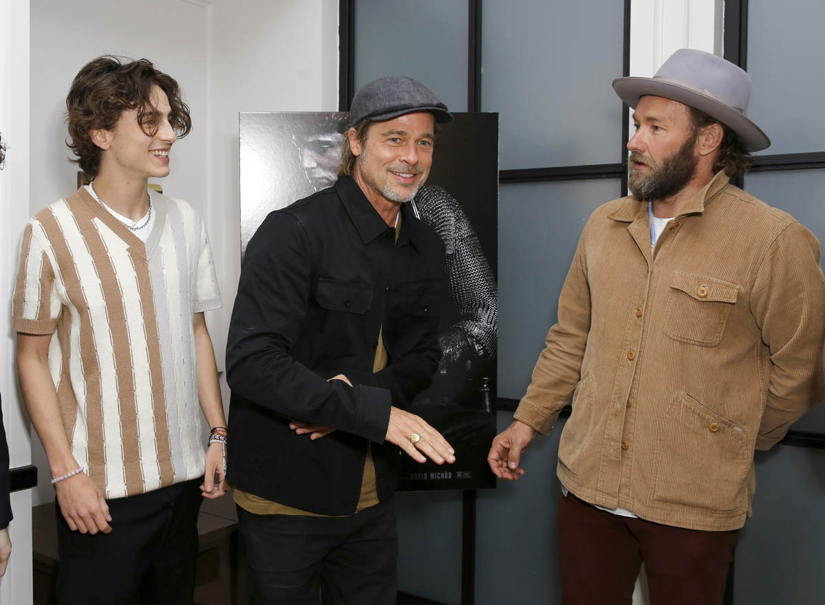 Timmy is pulling double duty, beginning promotion for Little Women while continuing promotion for The King. Earlier this week, he was in London, at a screening for The King and hanging out with Brad Pitt: