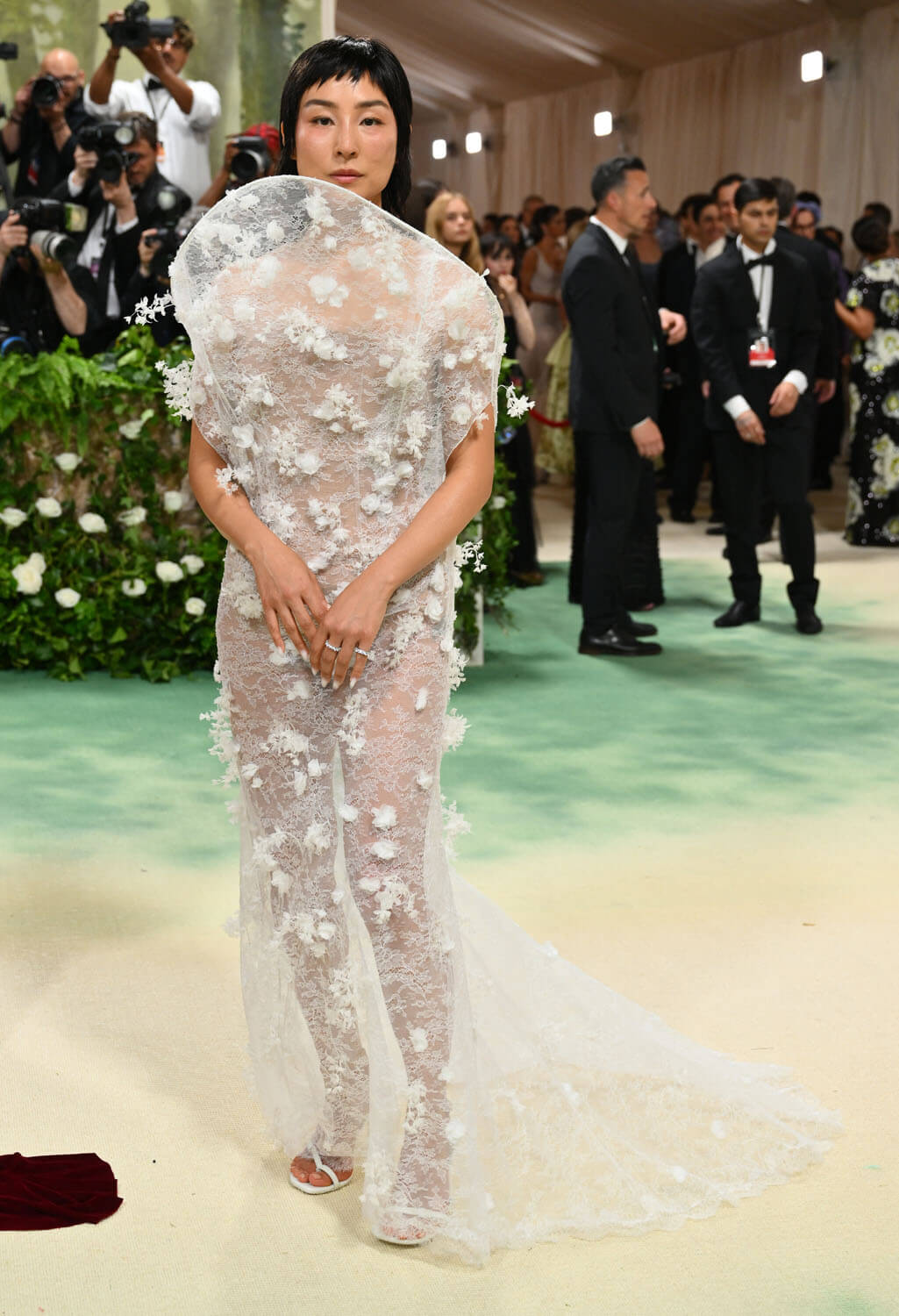 That said, she did encourage it at the beginning of the night – which is when I was actually kinda hopeful that her look would be excited about. Because when she was leaving the hotel, with her cloak wrapped around her, it was giving… a little… Mariko in Shōgun. And, sure, if Kylie was out here at the Met Gala sartorially inspired by for Shōgun, I could try to defend it. But that wasn’t the case. The cloak was meant to save the big reveal of the dress which, like, what’s the point when the dress was a nothingburger.