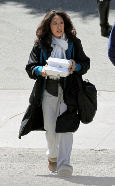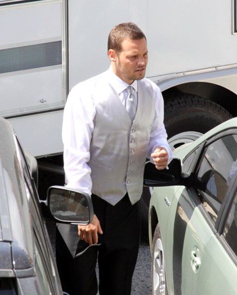 Here are photos of the cast of Grey’s Anatomy shooting a mystery wedding scene today for the end of season. Get out your hankies!