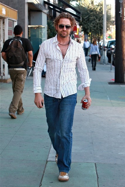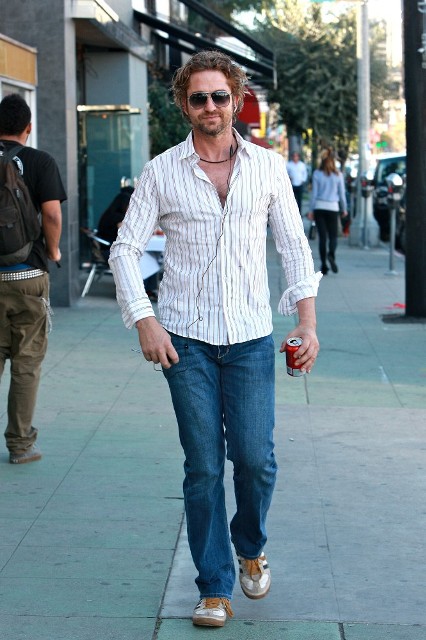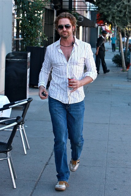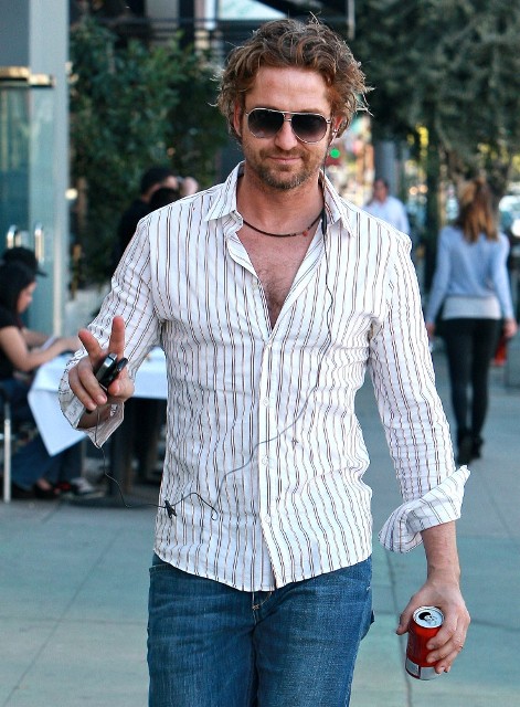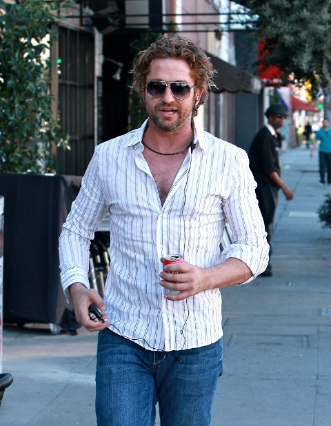 Check out Gerard Butler in LA yesterday grossing the sh-t out of you.