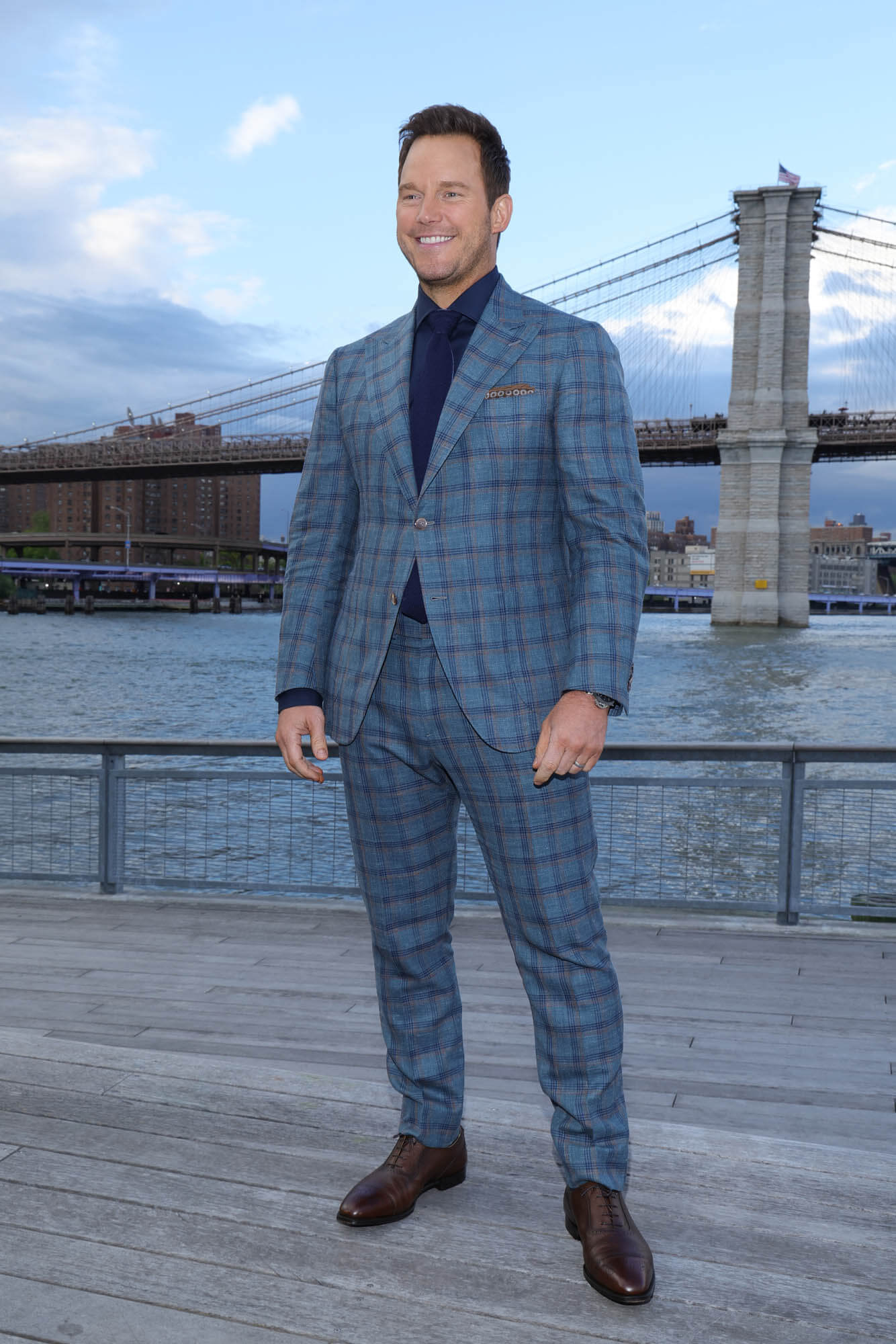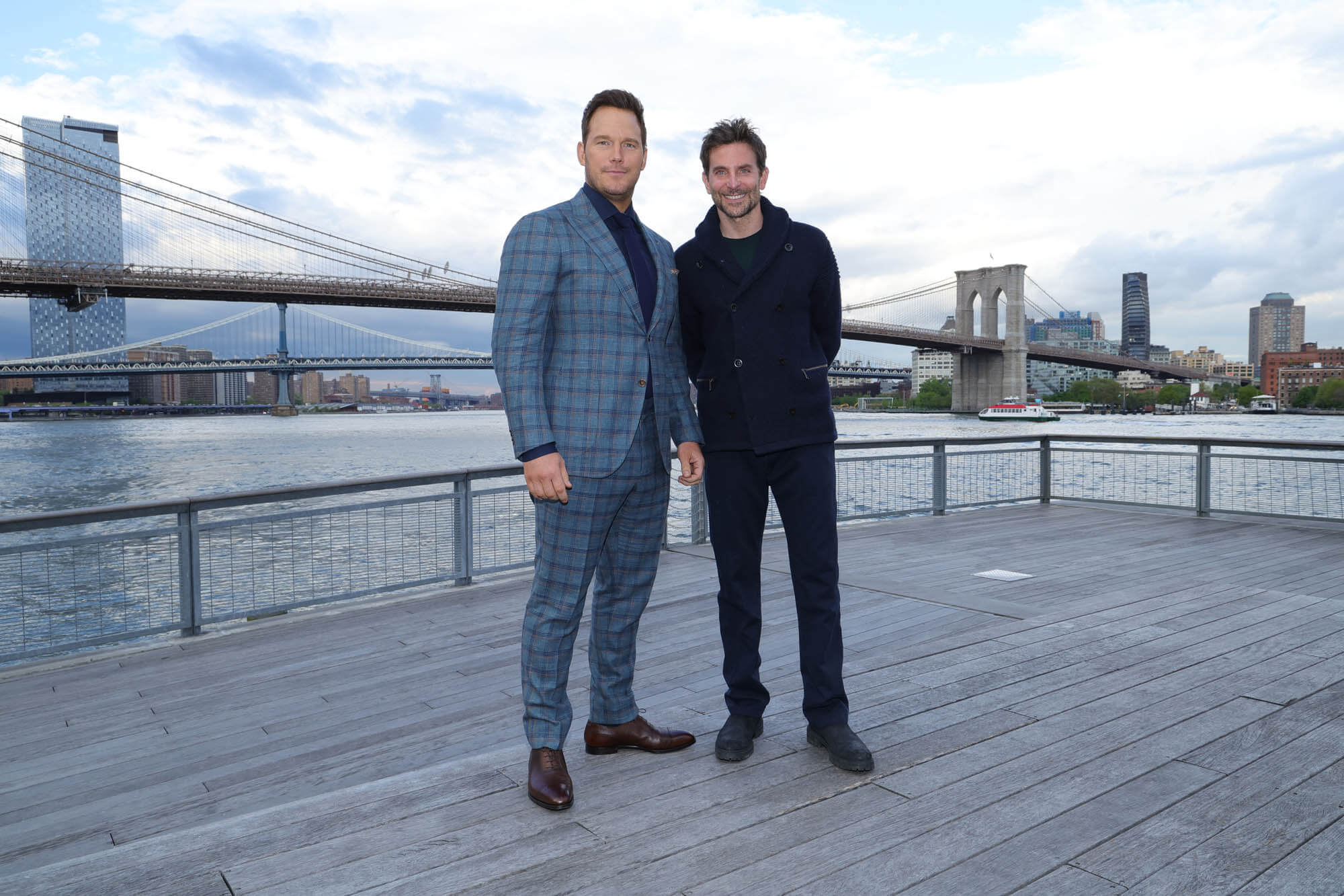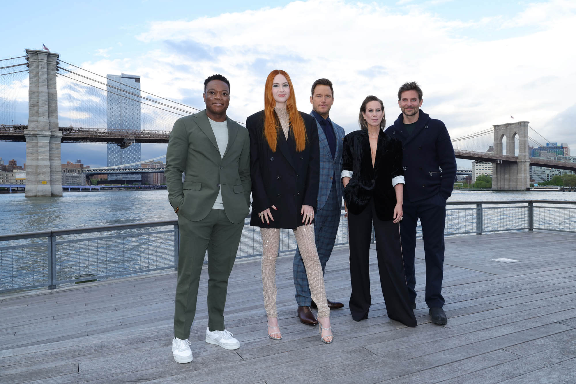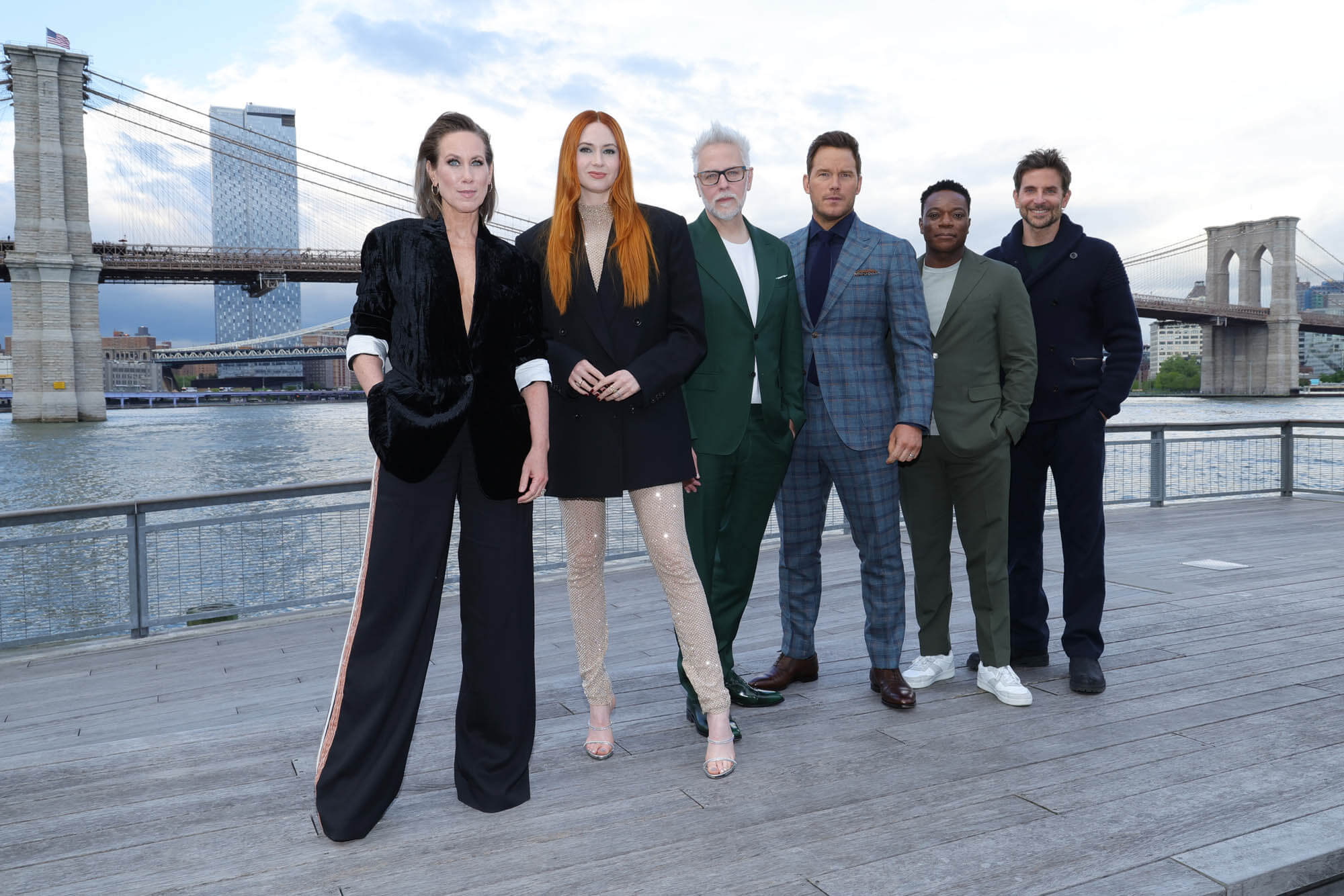 Speaking of Pratt, here he is in New York yesterday with James Gunn, Karen Gillan, Chukwudi Iwuji, Miriam Shor, and Bradley Cooper—who insists on dressing like a substitute teacher during this press tour—for a special screening of Vol. 3.