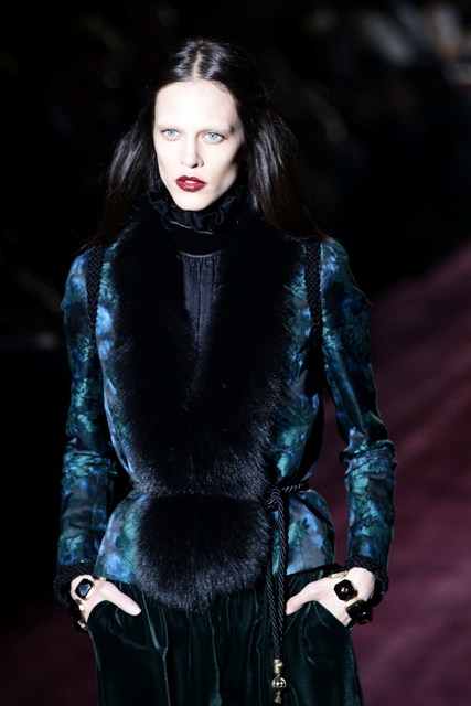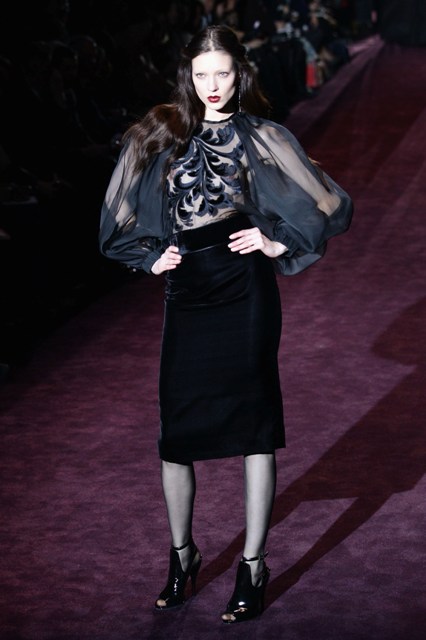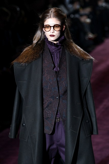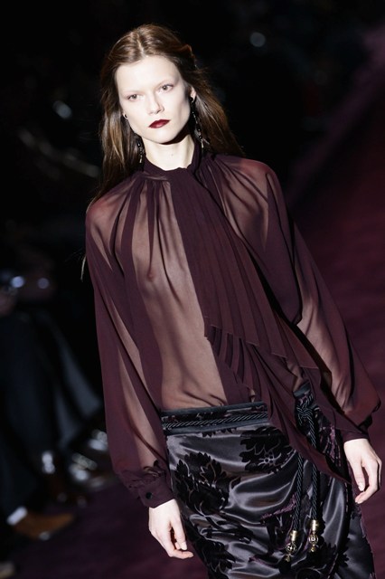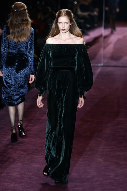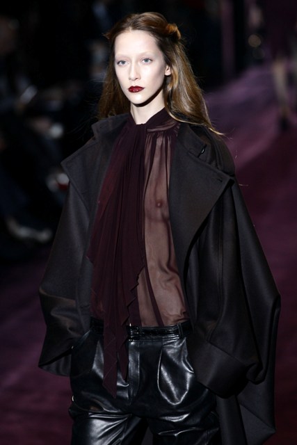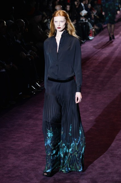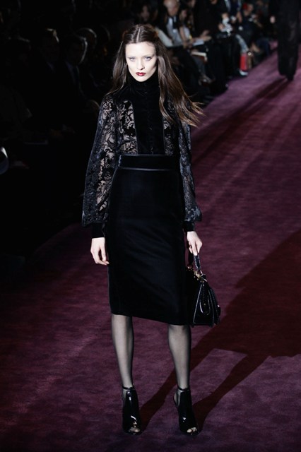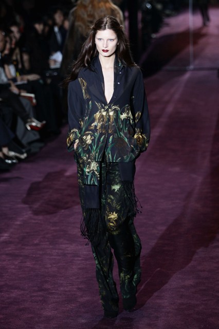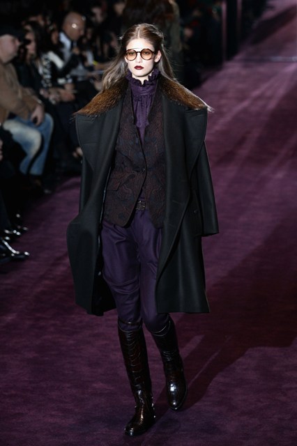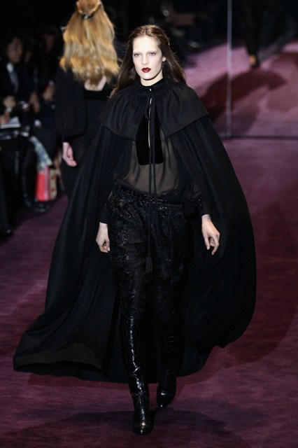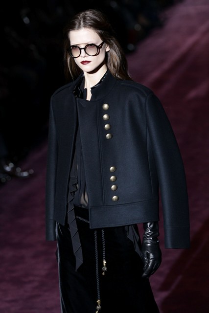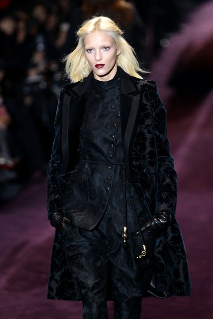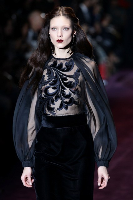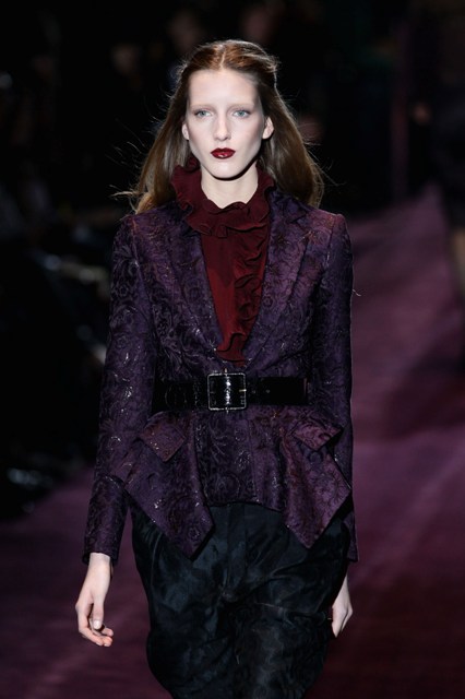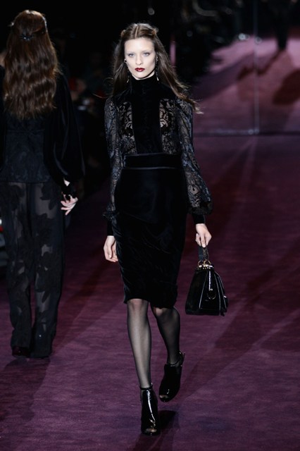 There’s a lot of velvet in this collection. And I LOVE IT. I love all of it. Especially the sheer blouse with the lace overlay – is that how you describe it? How do you wear that if you’re a c cup, even if you have a lot of money? Also those, for lack of a better description, tuxedo riding pants. Please let there be a knock-off soon. These clothes are exquisite.