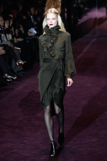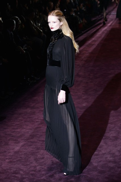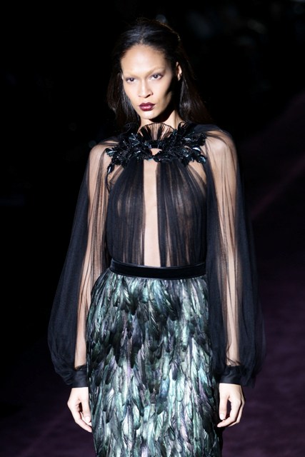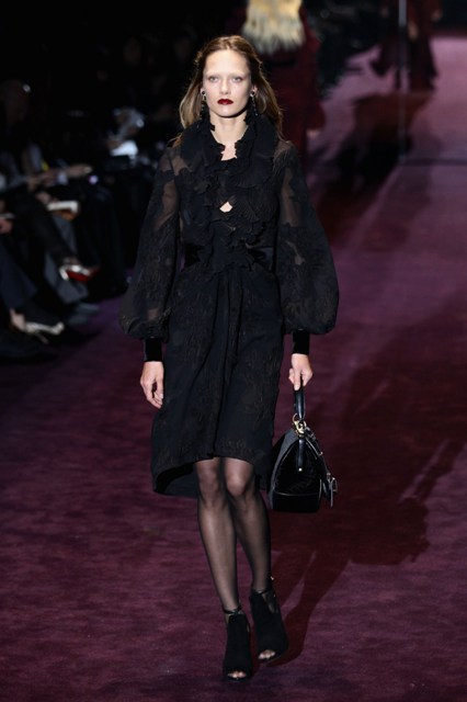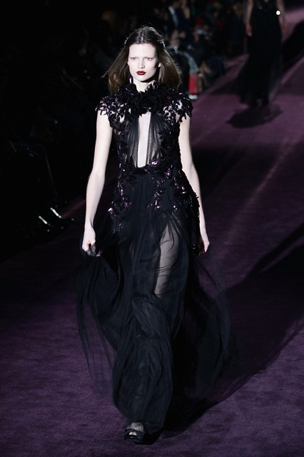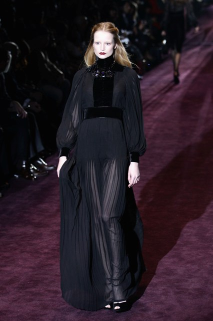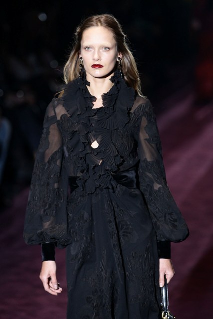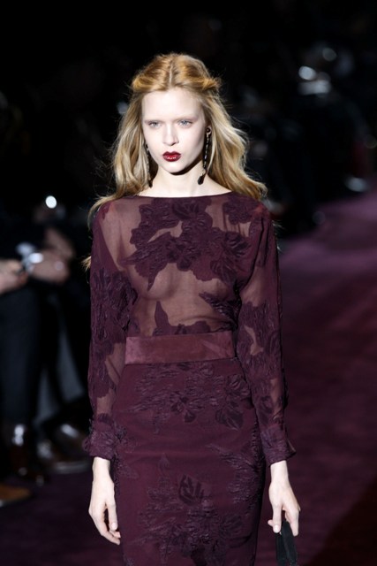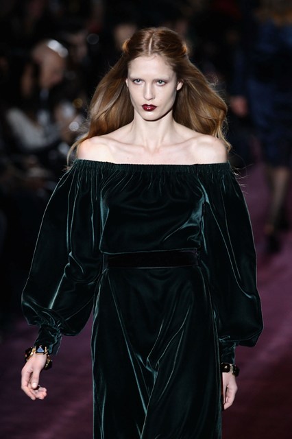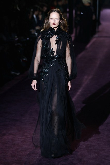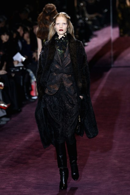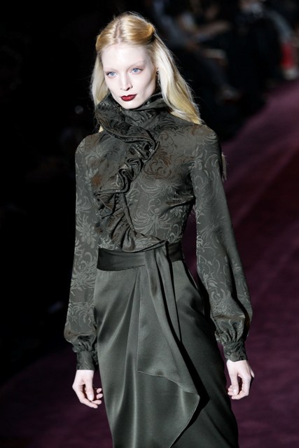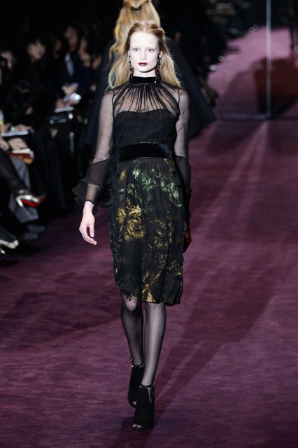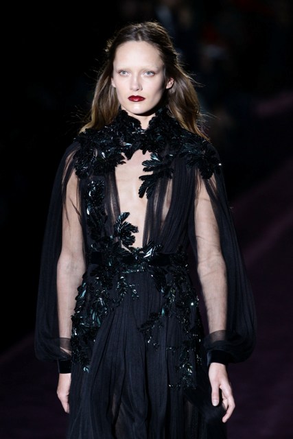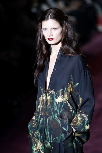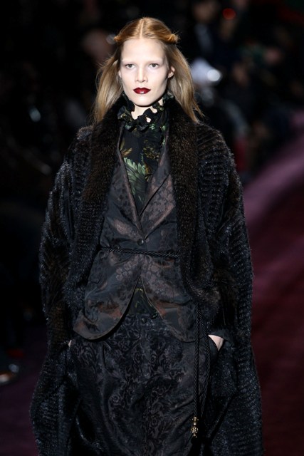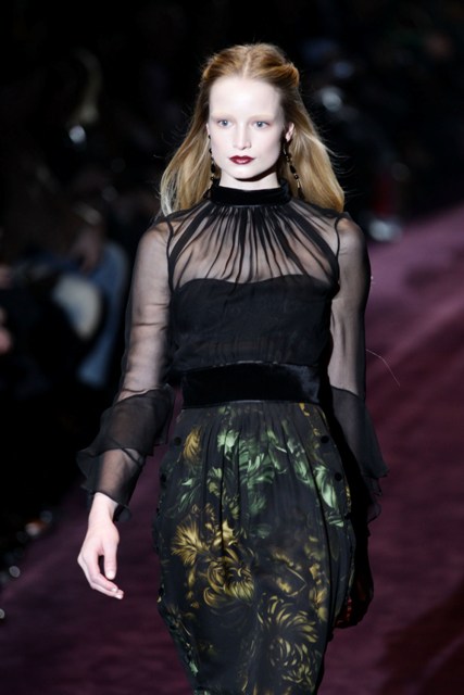 There’s a lot of velvet in this collection. And I LOVE IT. I love all of it. Especially the sheer blouse with the lace overlay – is that how you describe it? How do you wear that if you’re a c cup, even if you have a lot of money? Also those, for lack of a better description, tuxedo riding pants. Please let there be a knock-off soon. These clothes are exquisite.