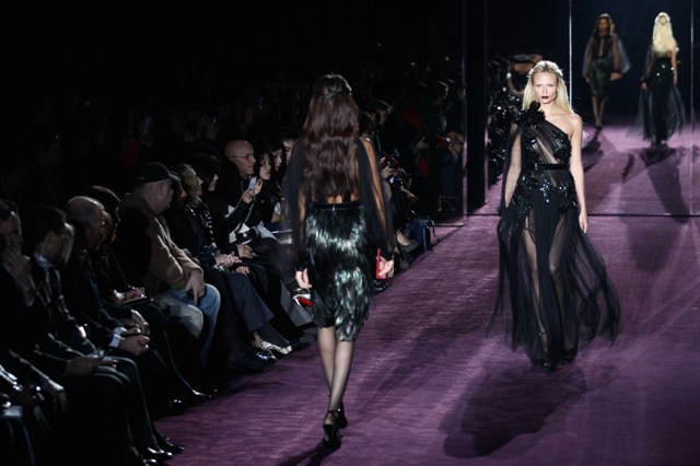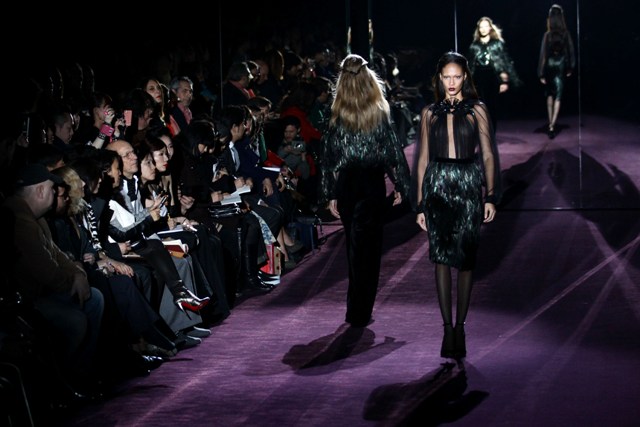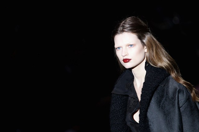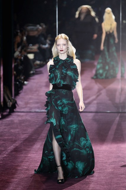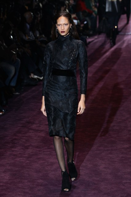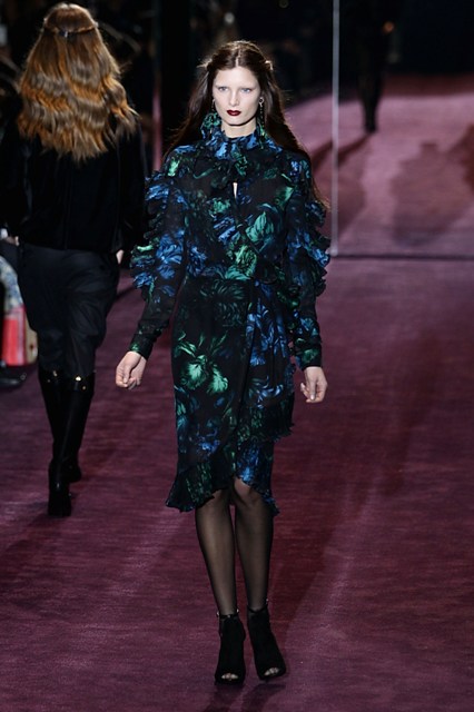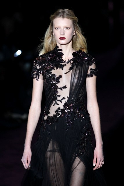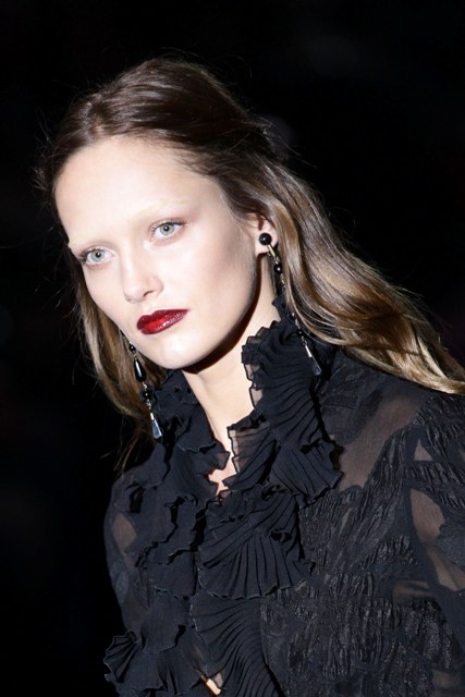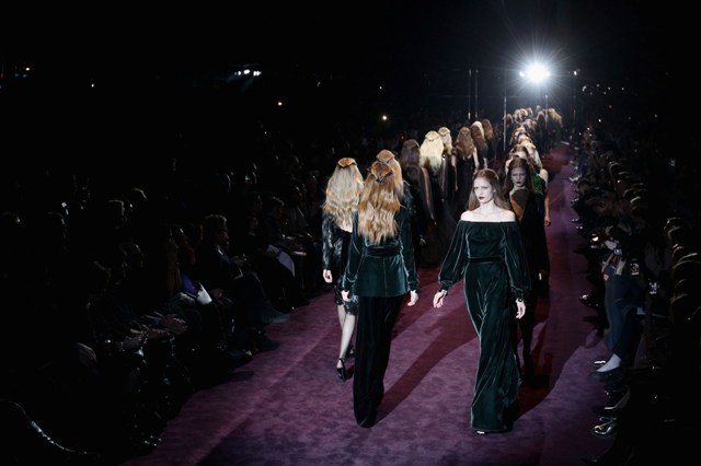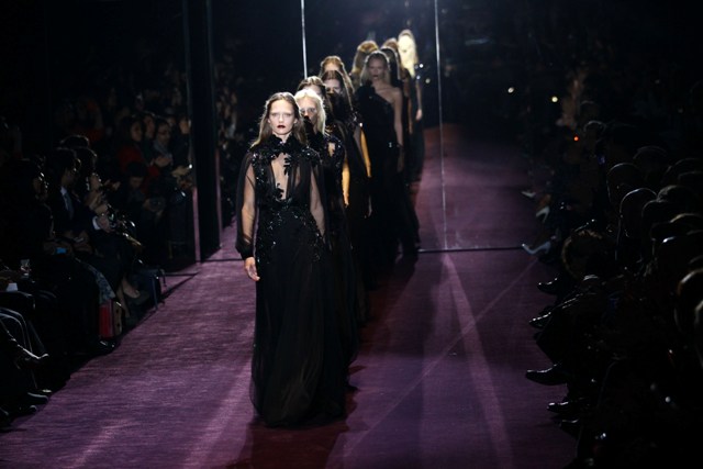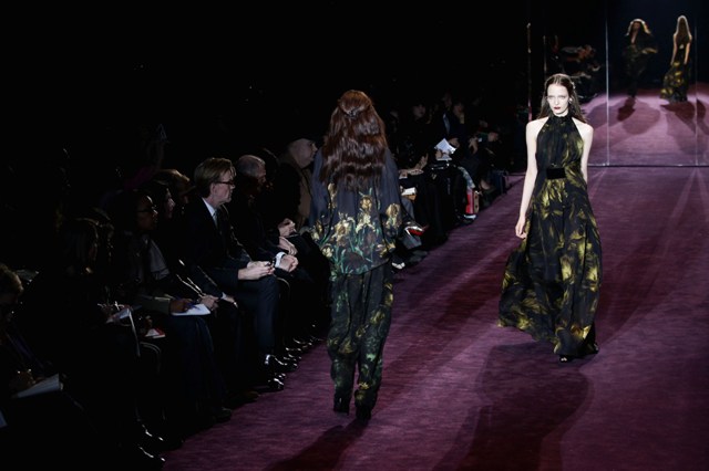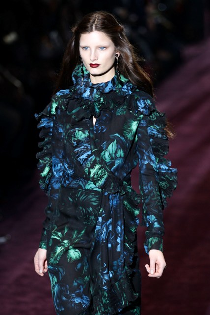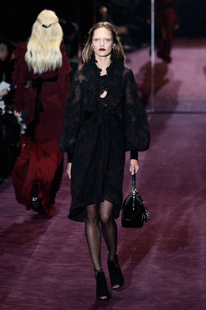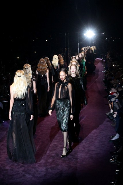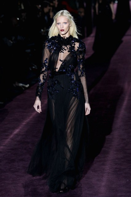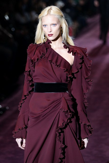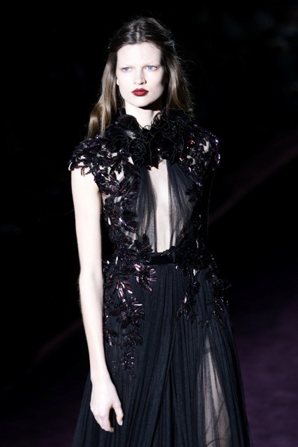 There’s a lot of velvet in this collection. And I LOVE IT. I love all of it. Especially the sheer blouse with the lace overlay – is that how you describe it? How do you wear that if you’re a c cup, even if you have a lot of money? Also those, for lack of a better description, tuxedo riding pants. Please let there be a knock-off soon. These clothes are exquisite.