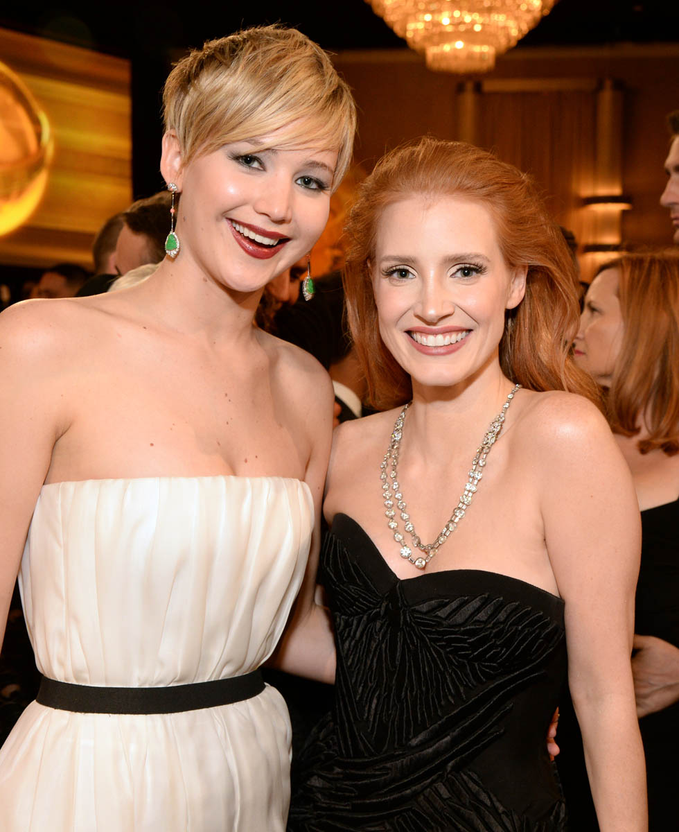 Other possibility: Jessica Chastain. Jennifer won her Oscar for Silver Linings Playbook the same year Jessica was nominated for Zero Dark Thirty so the storyline was that they are rivals. Jessica has repeatedly denied the rumours and has also publicly complimented Jennifer for her wage gap essay. Still, some people aren’t convinced.
