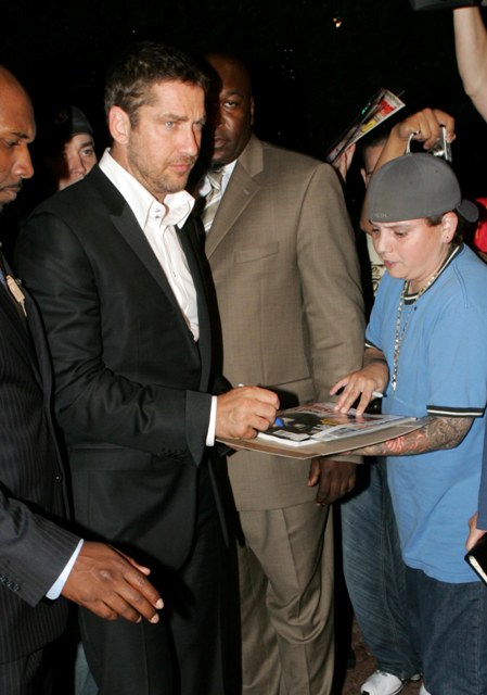 And then there’s Gerard Butler. As you know, he’s not my type. But to his credit, he was the only one who exited his ride and immediately went to the people waiting to sign autographs. Wearing a Versace suit that fit him beautifully, surprisingly no spittle gathered at the corner of his mouth, he joked with photographers and took his time down the line, had most the female reporters twittering and quivering with his big voice and his accent. Since my loins aren’t set to his frequency, soon as I got my sound bite I was outta there. Was tired.