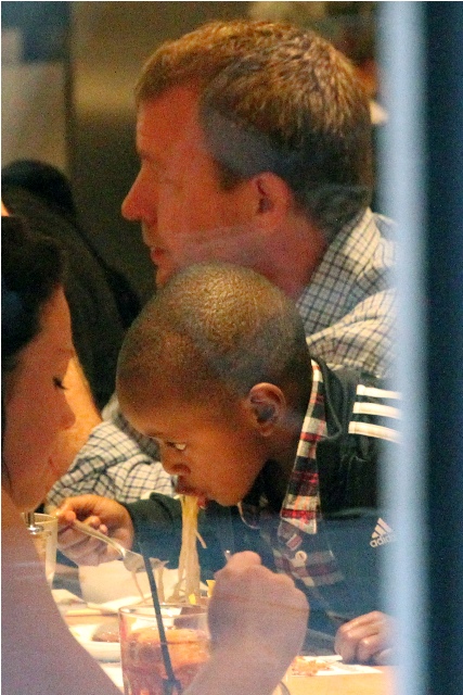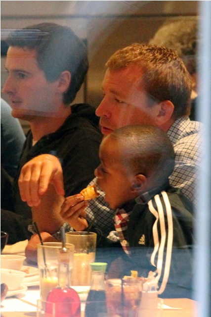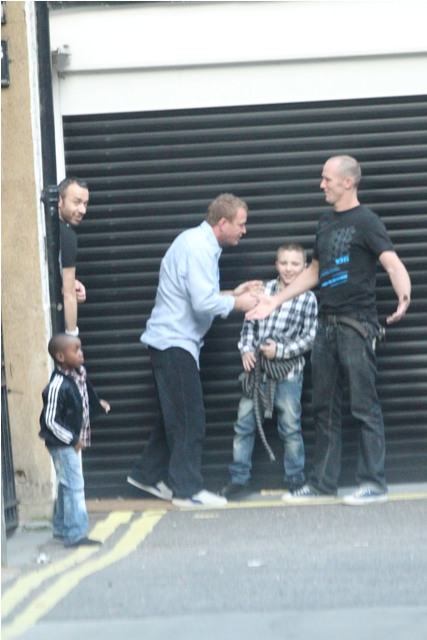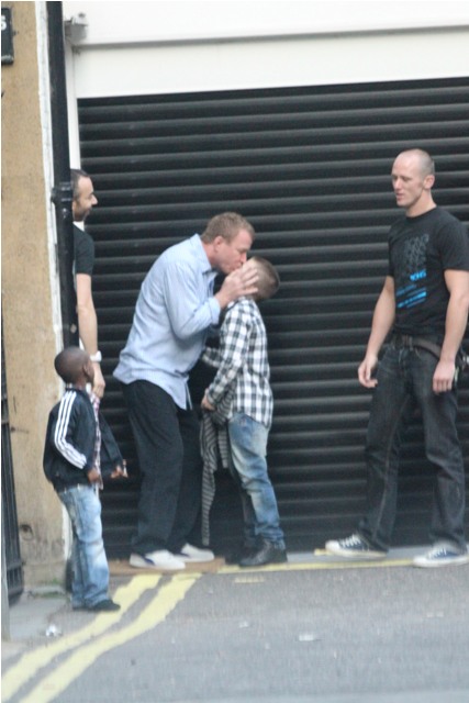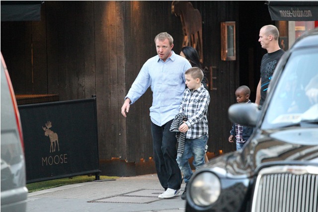 Yesterday it was Madonna getting mommy gushy with Lola on the set of W.E., now photos of her ex-husband Guy Ritchie picking up his boys Rocco and David Banda for his turn yesterday before taking them out for dinner at Wagamama. See Lorella? Wagamama! We had one right around the corner from our hotel. She seemed apathetic when I told her we should eat there.
