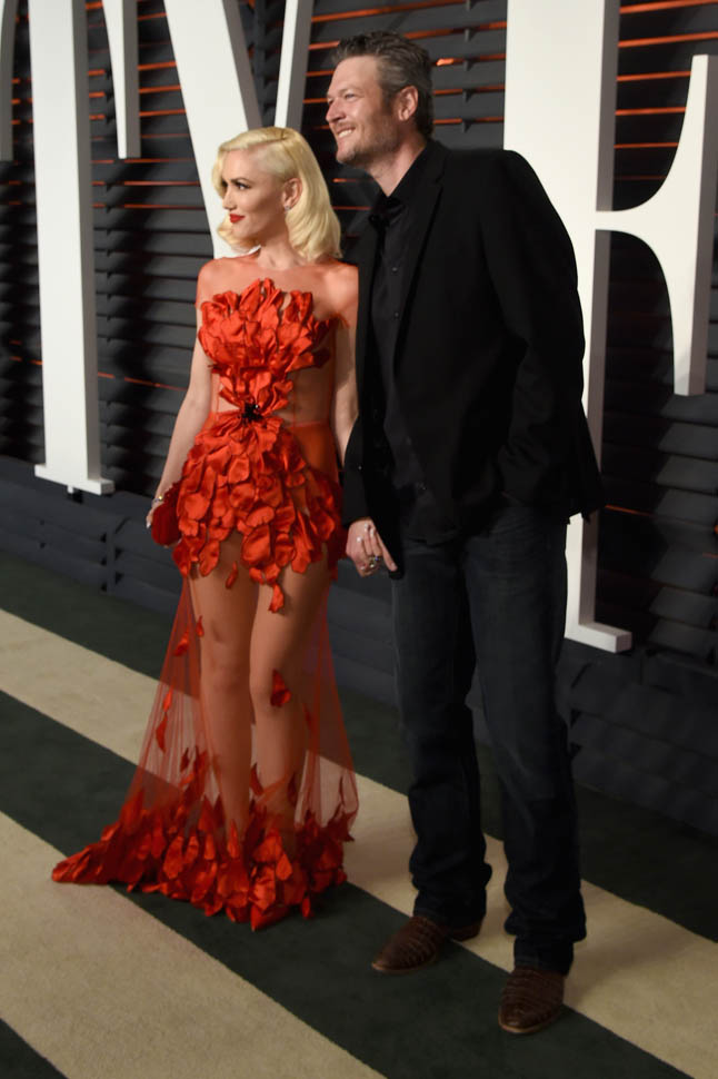 Gwen and Blake hit the Vanity Fair party, and as someone who stresses over outfits, I feel like this might be an even more stressful invitation than the Oscars. If you only get invited to the VF party, you have to gauge how ‘out there’ to go without the balance of your earlier, more traditional outfit to bounce off.