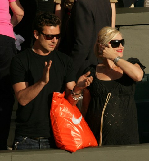 Gavin Rossdale and Roger Federer are super tight. So it was no surprise to see Gavin in the stands yesterday centre court at Wimbledon supporting his friend and he brought along his wife Gwen. They were the cutest, cuddling during the match. See attached –she has her arm draped around him during a lengthy point.