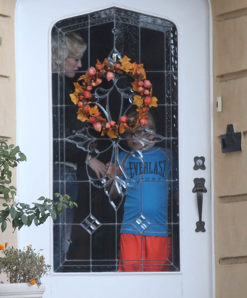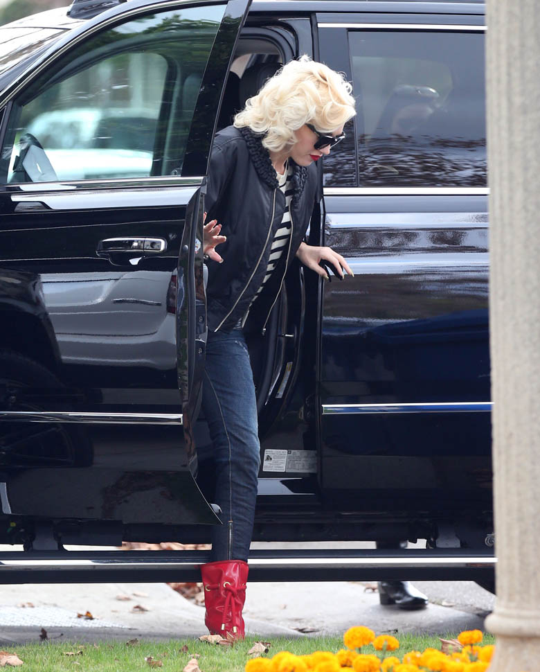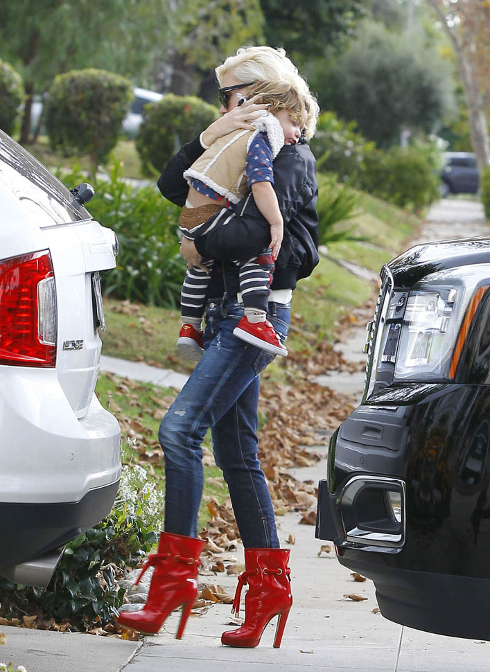 There are rumours that Blake Shelton invited Gwen Stefani and her boys to spend Thanksgiving at his home in Oklahoma. That turned out to be bullsh-t. Blake was seen getting out of LA on a private jet a couple of days ago and here’s Gwen with her kids at her parents’ yesterday. You’ll note though that when she arrived at the house, she was on her phone. And she turned the screen towards the paps, apparently to show them that she was Facetiming Blake?