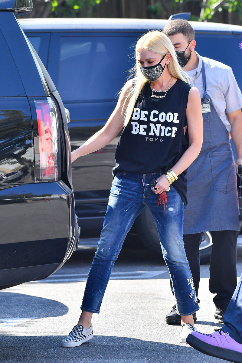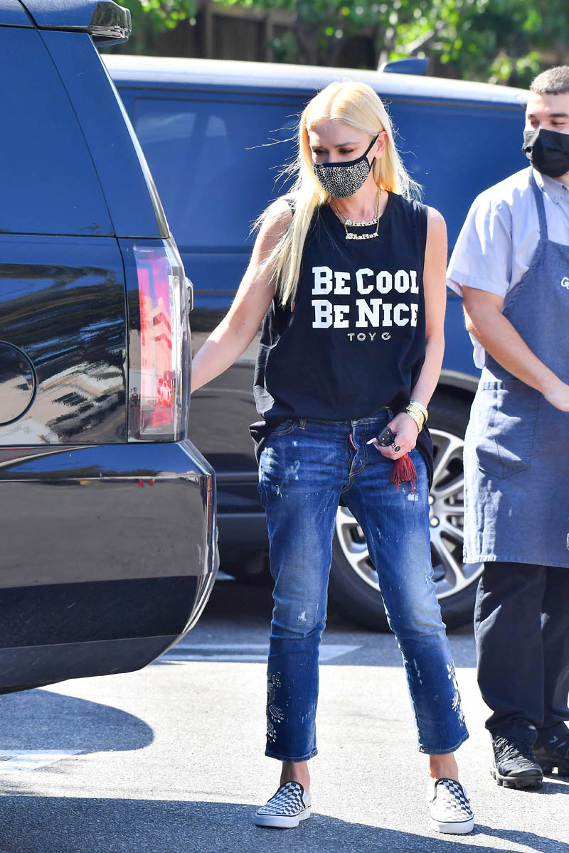 Anyway, here’s Gwen at the grocery store with her kids the other day which is the real reason I’m posting about her: I also love Gwen’s casual steeze and I love this outfit. I love the fit of these jeans. The fit, I said. Not the tacky embroidering on either side, lol. Maybe that’s just my bias though because my ma wears jeans like that with the tacky embroidering up and down the leg, Asian auntie styles. The fit, however, is perfect on Gwen. There’s your dilemma. What if you found the most ideal jeans fit ever… but they came with some sh-t graphics all over them?