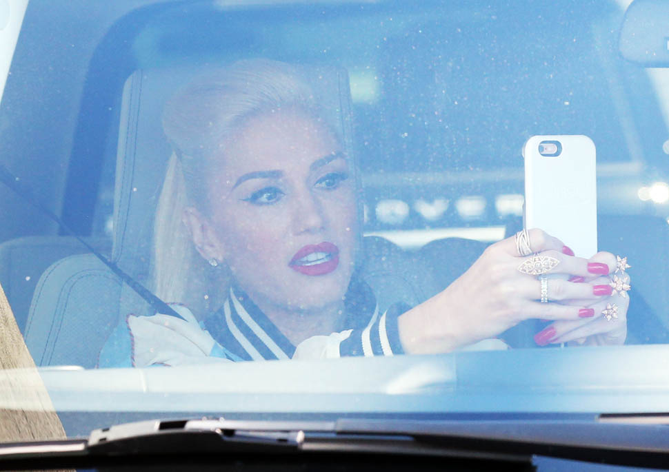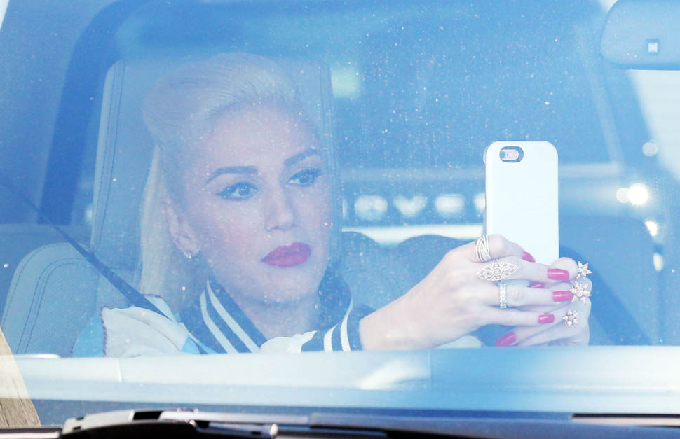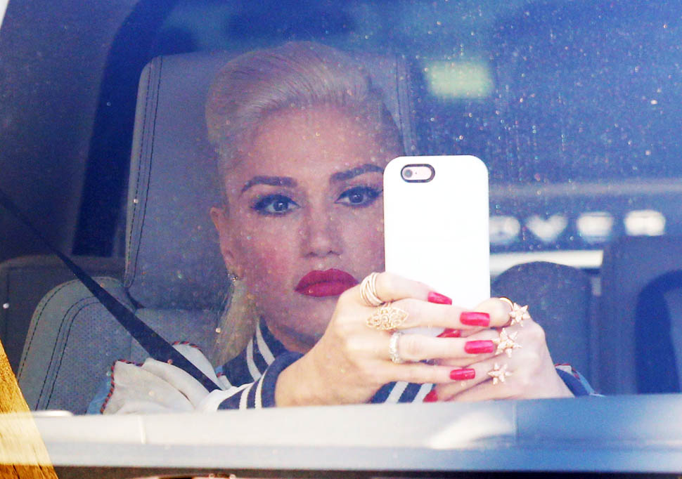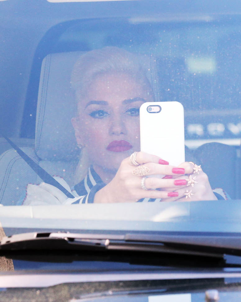Here’s Gwen on James Corden and also in her car taking selfies the other day. It’s still embarrassing to me, watching someone take a selfie, or thinking that someone could be watching me take a selfie, even though a selfie is about as ordinary as a wave these days. You’re basically staring at yourself in the mirror in front of an audience.