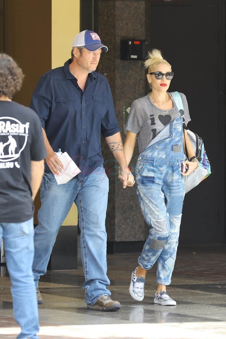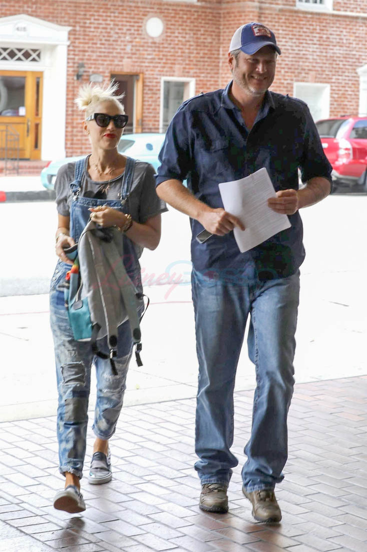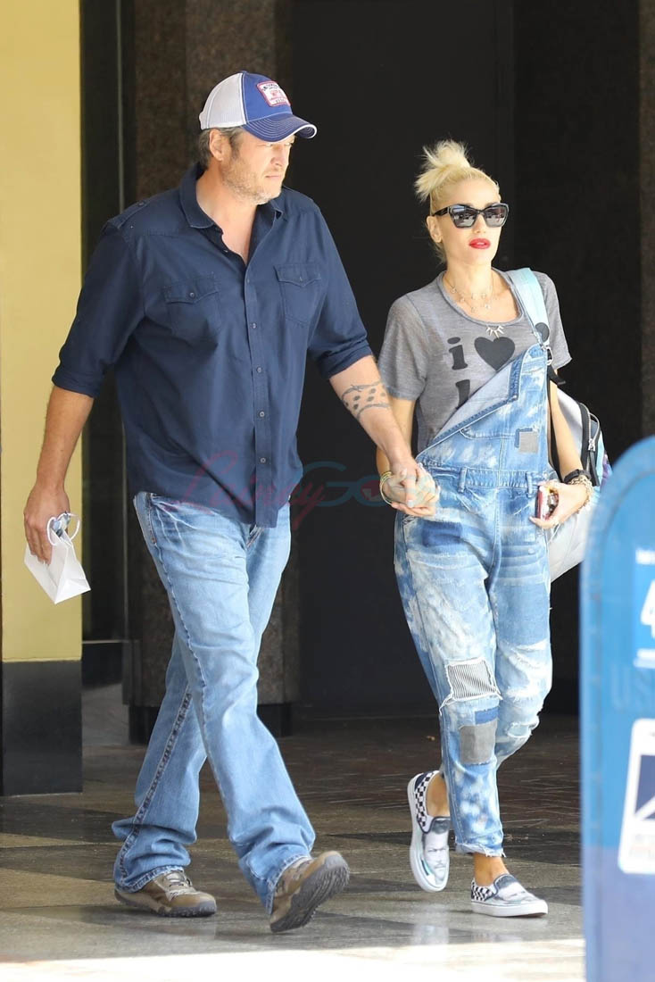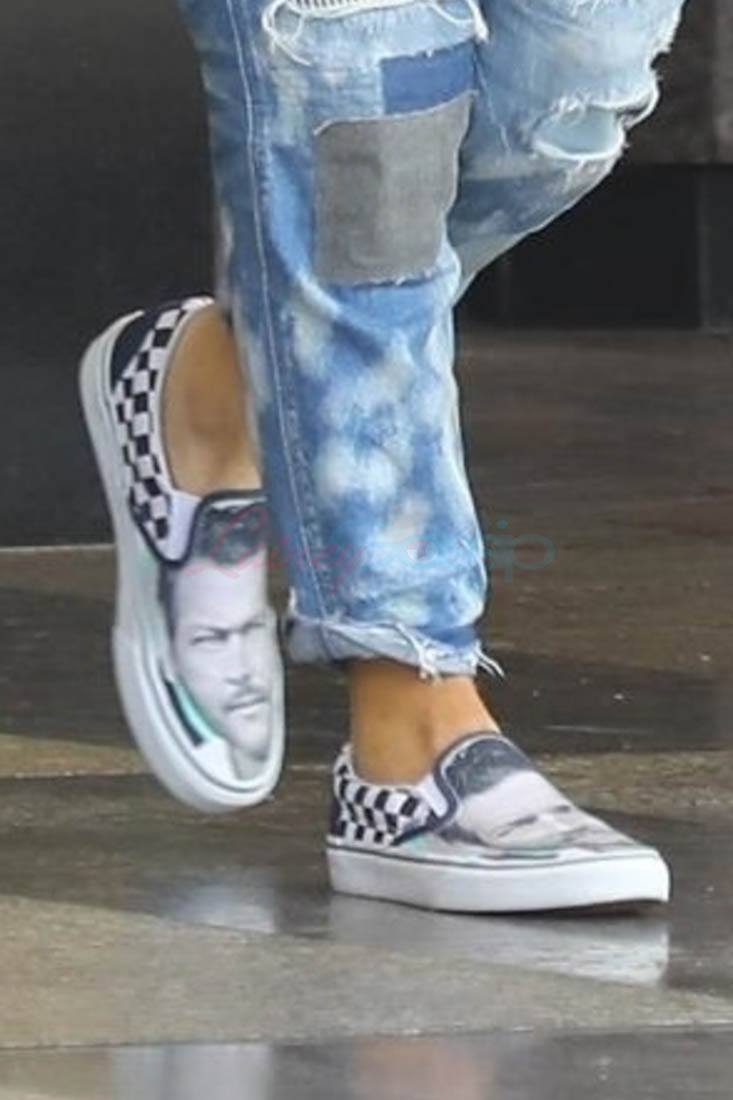 Yesterday, Gwen was wearing her affection on her feet. She and Blake were spotted going to the doctor’s office in matching denim outfits while Gwen rocked a pair of Vans emblazoned with Blake’s face on them, as you do. Gwen Stefani has never been low-key. She’s always worn weird sh-t. These shoes don’t surprise me. It’s also not the first time she’s worn them. What surprises me is that I don’t hate them. Is it weird that I kinda want a pair? But, you know, with my boyfriend Michael Bae Jordan’s face on them.