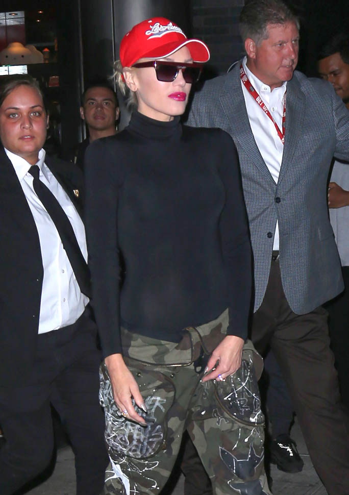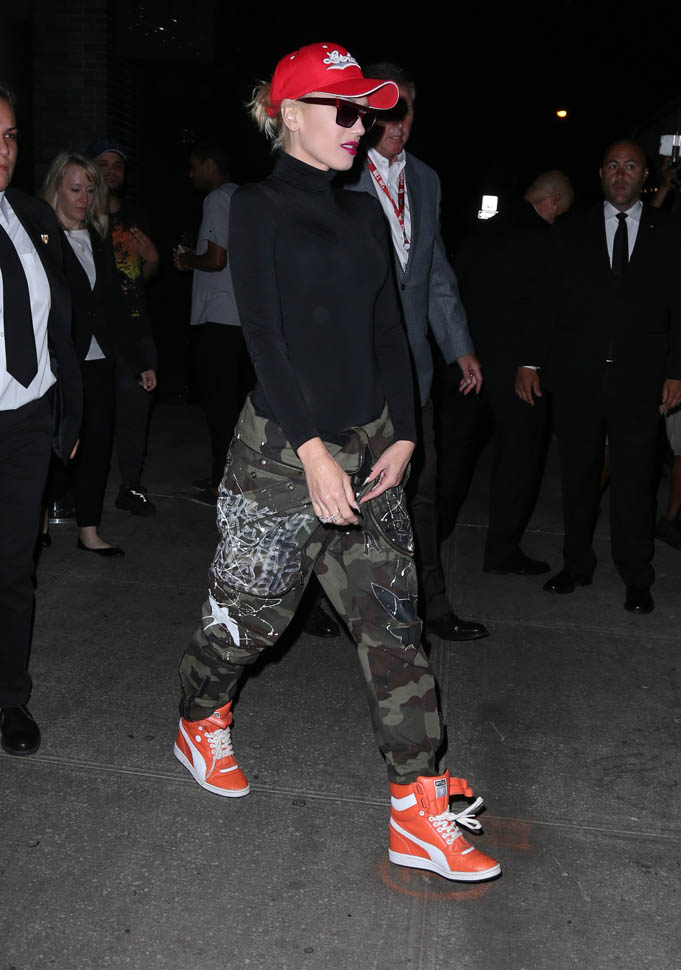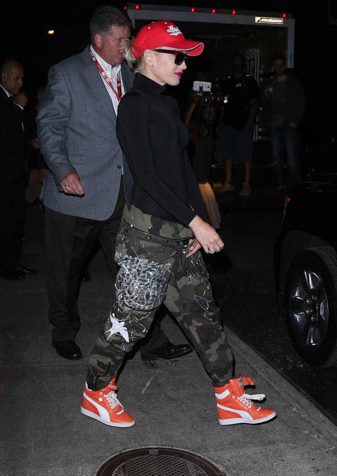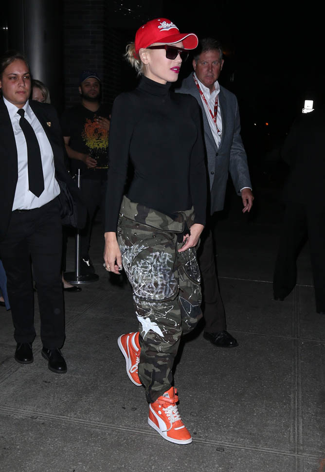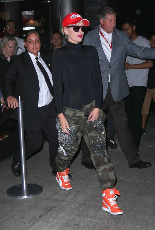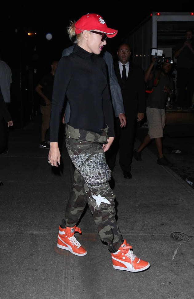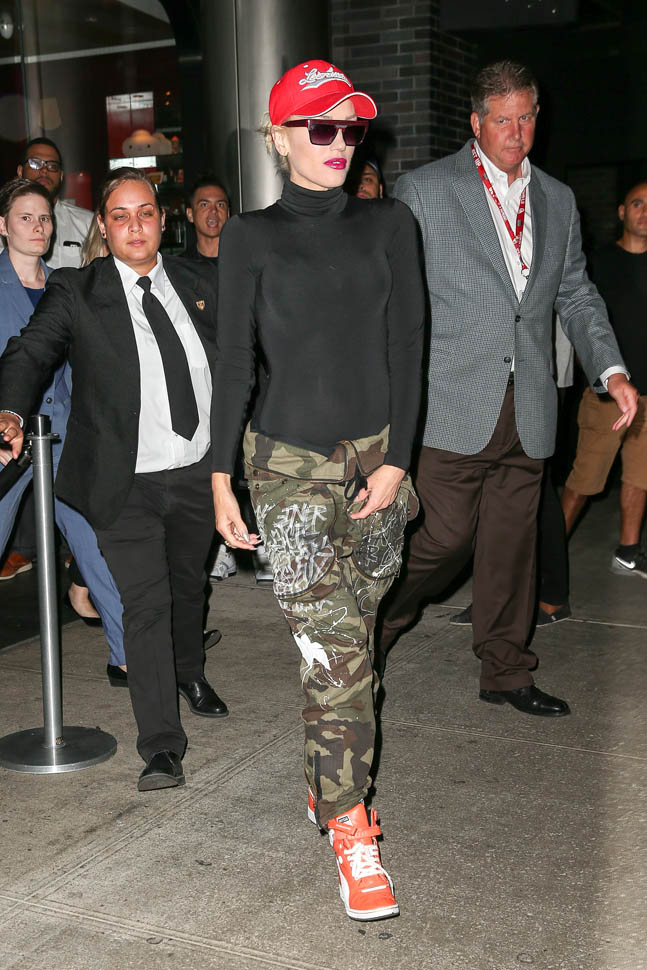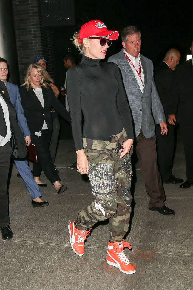 And now Gwen Stefani in camo pants with a foldover waist. It has to be tight to the body up top for this look to work though because otherwise you miss the effect. I really need to try a pair.