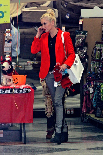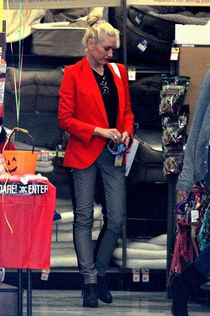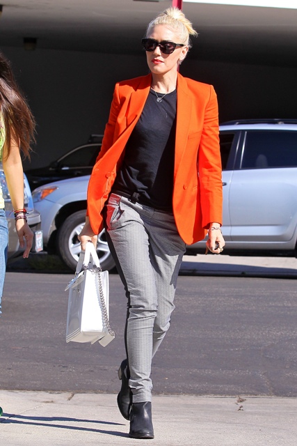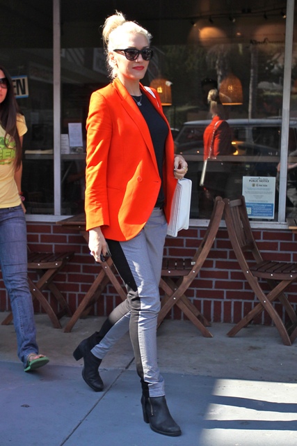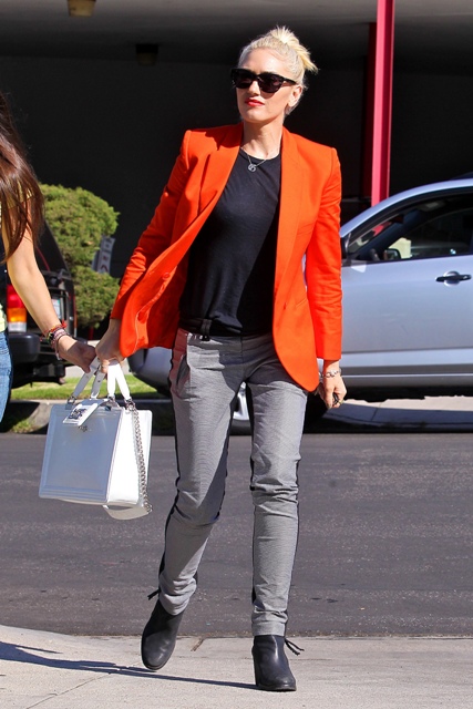 Carpets & Candids: Gwen’s optical illusion pants and orange blazer