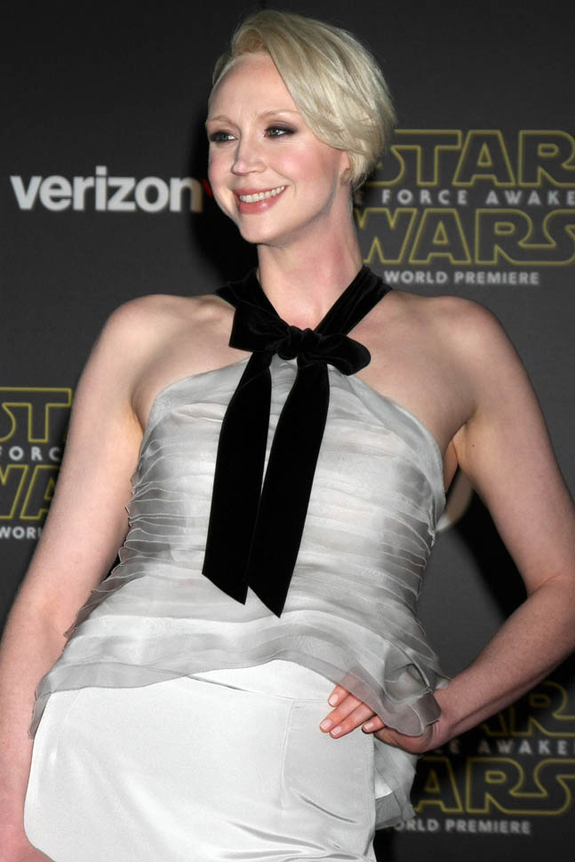 The fact that it’s a muted silver grey is what makes it not offensive at all. And, again, of course, Gwendoline Christie is wearing it.