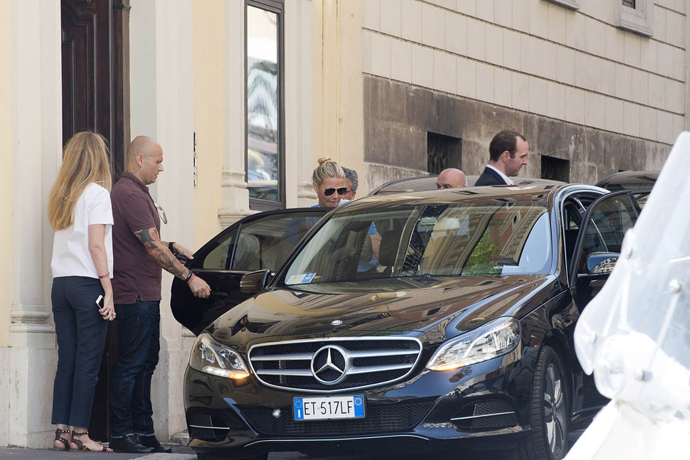 Is G driving in Rome? I’m impressed. I’d be terrified to drive in Europe. Then again, she might have some experience after living and driving around in London. As you can see, Falchuk is right beside her. The kids must be back in the Hamptons with Chris Martin then. And Jennifer Lawrence? She actually left for Montreal earlier this week to resume work on X-Men. I’ve heard that Falchuk spends more time with the kids than Jennifer does, if she does at all.