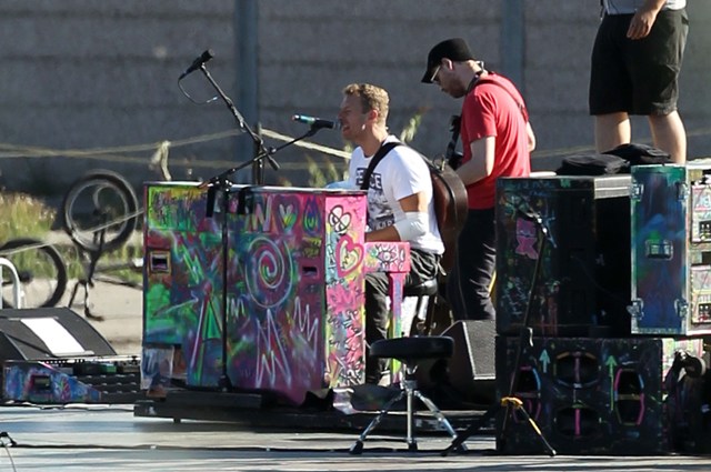 This is Coldplay rehearsing today for their performance at the Closing Ceremony at the Paralympics on Sunday. Coldplay is also expected to perform tonight during the live telecast for Stand Up To Cancer, executive produced by Chris Martin’s wife Gwyneth Paltrow. Gwyneth is then due to be here, in Toronto, at TIFF on Saturday night. My producer Danielle, who’s doing all the assignments, asked me if I wanted that carpet. I agonised. And ultimately I declined. I have never met my G. I don’t think I want to. I want to know her in my head and not for real. I think I might be on Cloud Atlas instead. The schedule is still changing.
