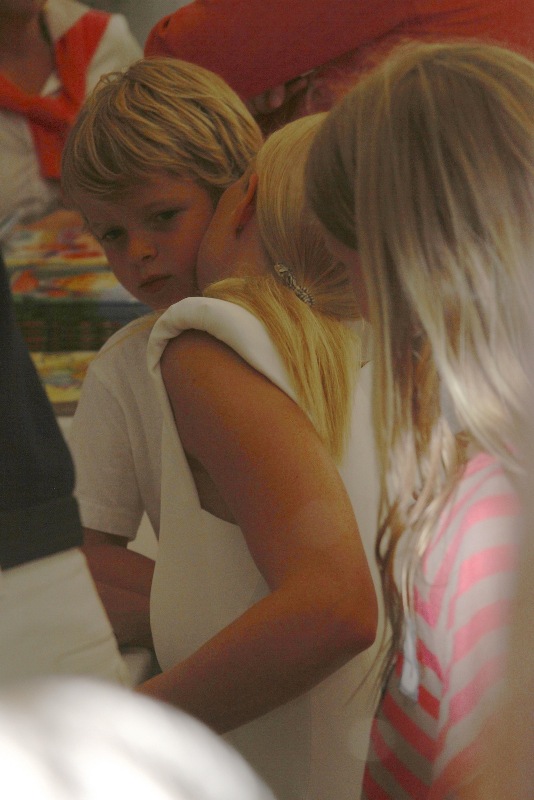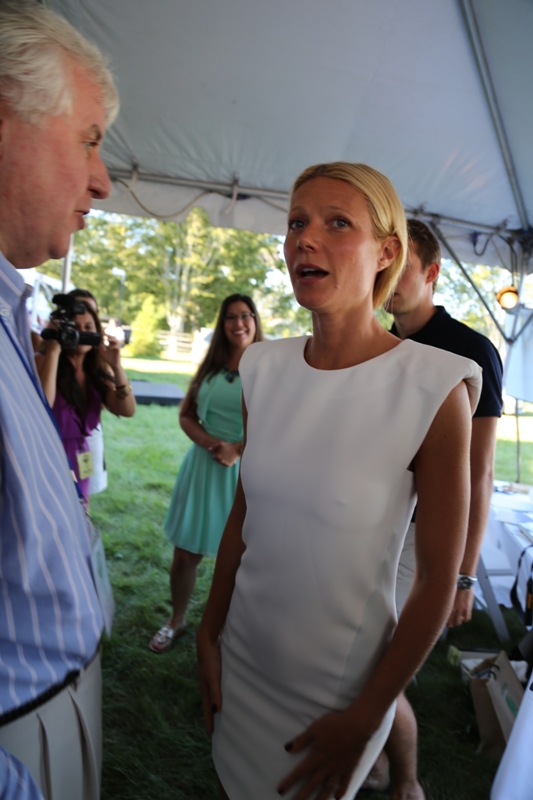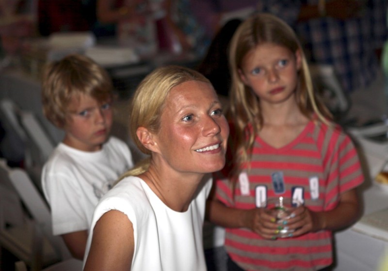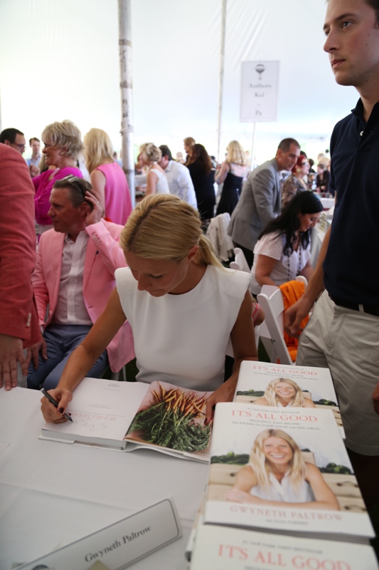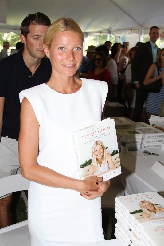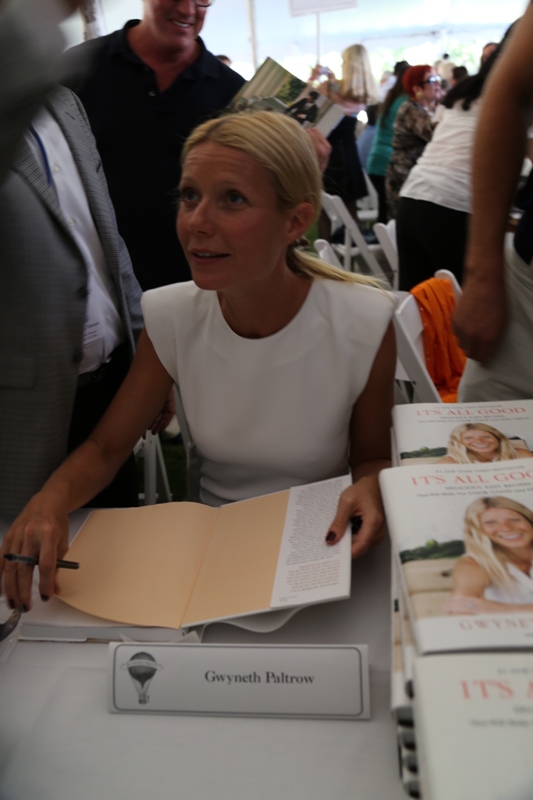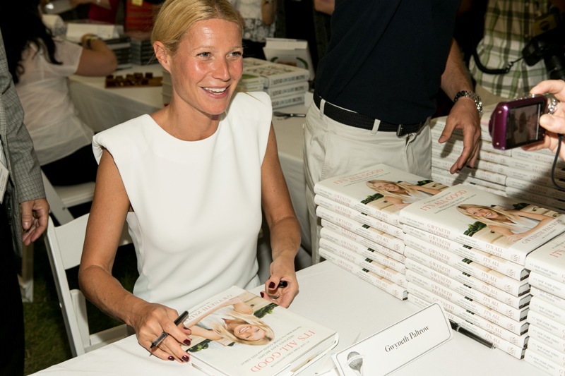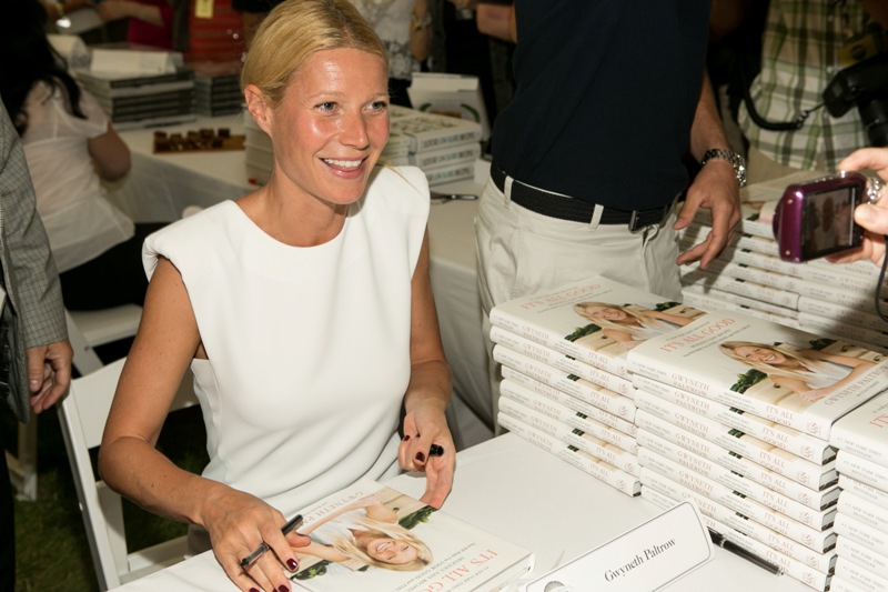 As mentioned last week, Gwyneth Paltrow and her family are spending August in the Hamptons. Click here for a refresher. On Saturday G lit up the Hamptons social scene not as an “actor” but as a “writer”, showing up for the Authors Night For The East Hampton Library event. Her husband Chris Martin (not pictured, no pictures anyway) and children, Apple and Moses, were with her for part of the day and the kids didn’t seem to want to leave her, even when she was at the signing table. At one point she leaned over and kissed her son. Cute, right? Later on that night, G let her hair down and put on some heels. I like that she’s barely wearing any makeup and didn’t bother to do her hair. Is this the Hamptons way? Also, are Asians allowed to buy homes in the Hamptons? I keep eyeballing the background of all these pictures and can’t seem to find any. Asians are driving up home prices all over the world. Would people in the Hamptons have a problem with that?
