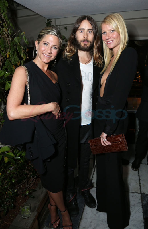 In other Gwyneth news, she was also at the CAA pre-Globes party on Friday and oh look, guess who she hung out with? Yeah that’s Jennifer Aniston on the other side of Jared Leto. Gwyneth is the friend who makes everyone else feel short.