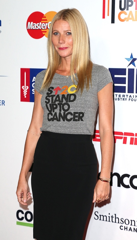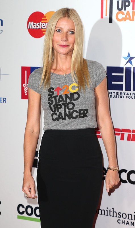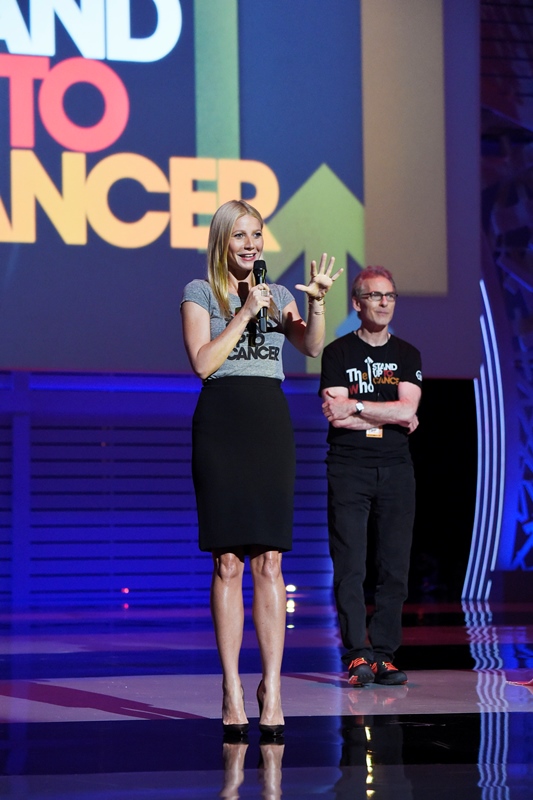 Gwyneth Paltrow was one of the producers of Stand Up To Cancer. The goal of SU2C was to raise over $100 million in support of cancer research. The event was simulcast around the world, even on competing conventional and cable networks and streamed on Yahoo! and Hulu without commercials and featured performances by Jennifer Hudson, Lupe Fiasco, Common, The Who, Dave Matthews, and Ariana Grande.