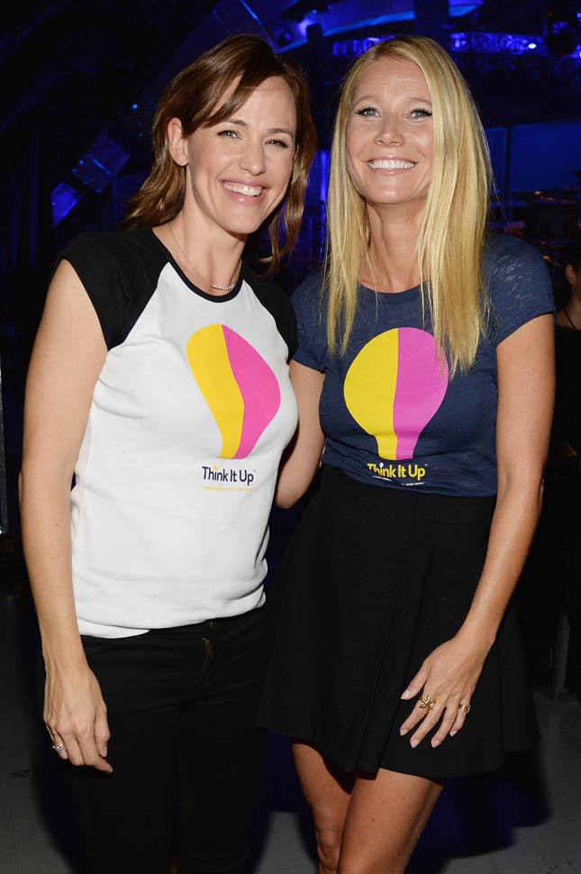 Gwyneth Paltrow and Jennifer Garner, bonded by Ben Affleck, and the inevitable disappointment that results from loving Ben Affleck, were both at the Think It Up event on Friday in LA. Does this picture happen if we never met Chrissy O? Does it happen if Jen and Ben are still together?