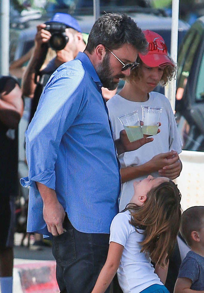 Yesterday she and Ben took the kids out to church and then the farmers market. As you can see, lately he’s been making an effort to look more engaged and happy when he’s with his family. Like that’s going to make you stop missing Chrissy O.