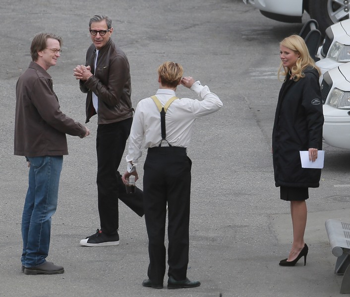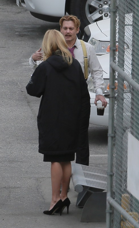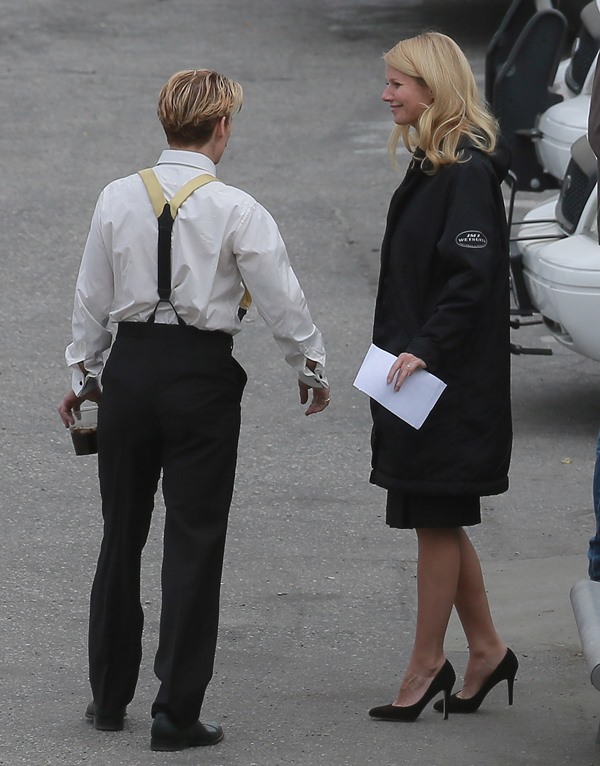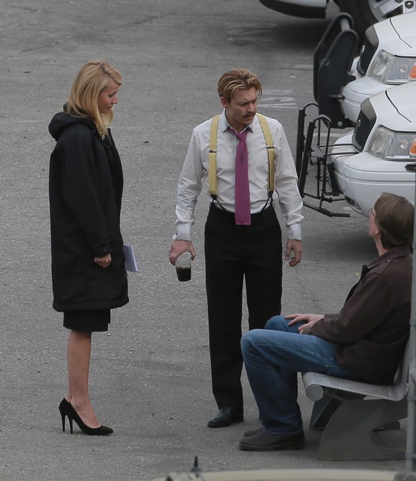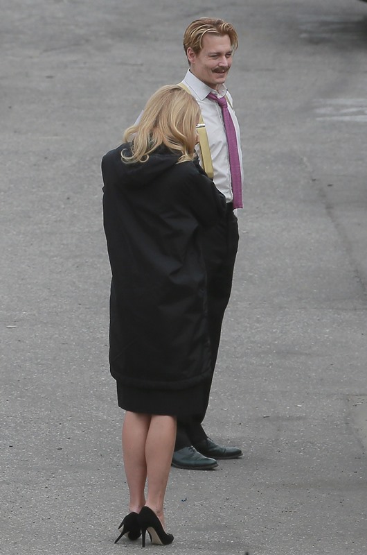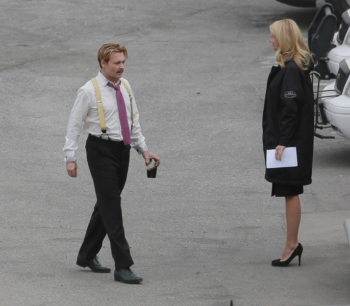 Gwyneth Paltrow and Johnny Depp were seen together in LA on the set of Mordecai yesterday. There were rumours circulating a few weeks that he hates her or something because she’s a pain in the ass. How come she can’t hate him for being a pain in the ass? It’s not like Johnny Depp isn’t a total cliché. These two do have a history though. What?