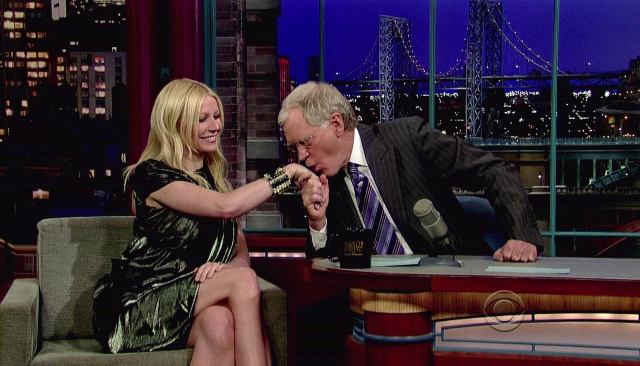 As for what she was like on Letterman –bless her because she was judgy. There’s a short clip below. And towards the end, note her reaction when Dave asks about bangers and mash. This is my G at her very best.
