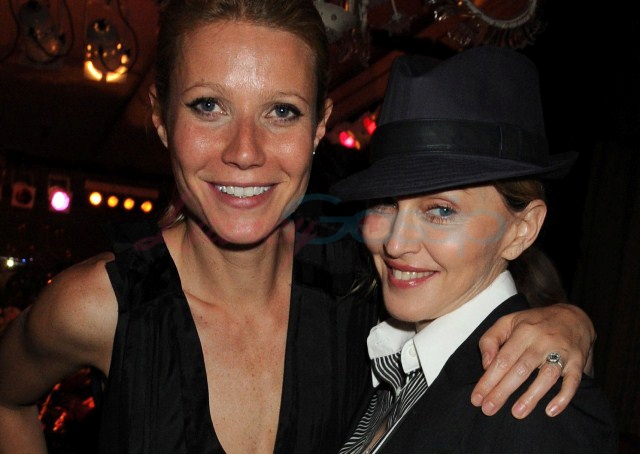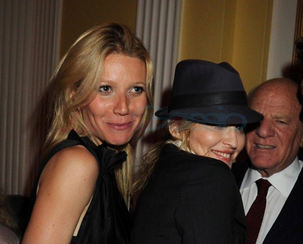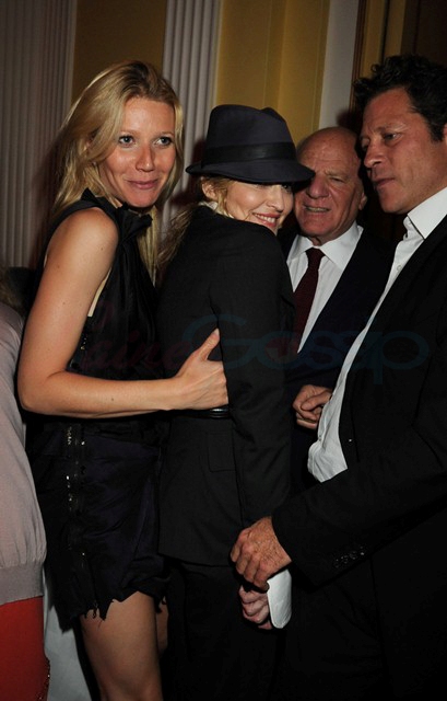 Because Gwyneth and Madonna were in London last night at the DVF and Claridge’s launch and they were very together. Like girly together. Probably huddled in a corner most of the night laughing at Victoria Beckham.